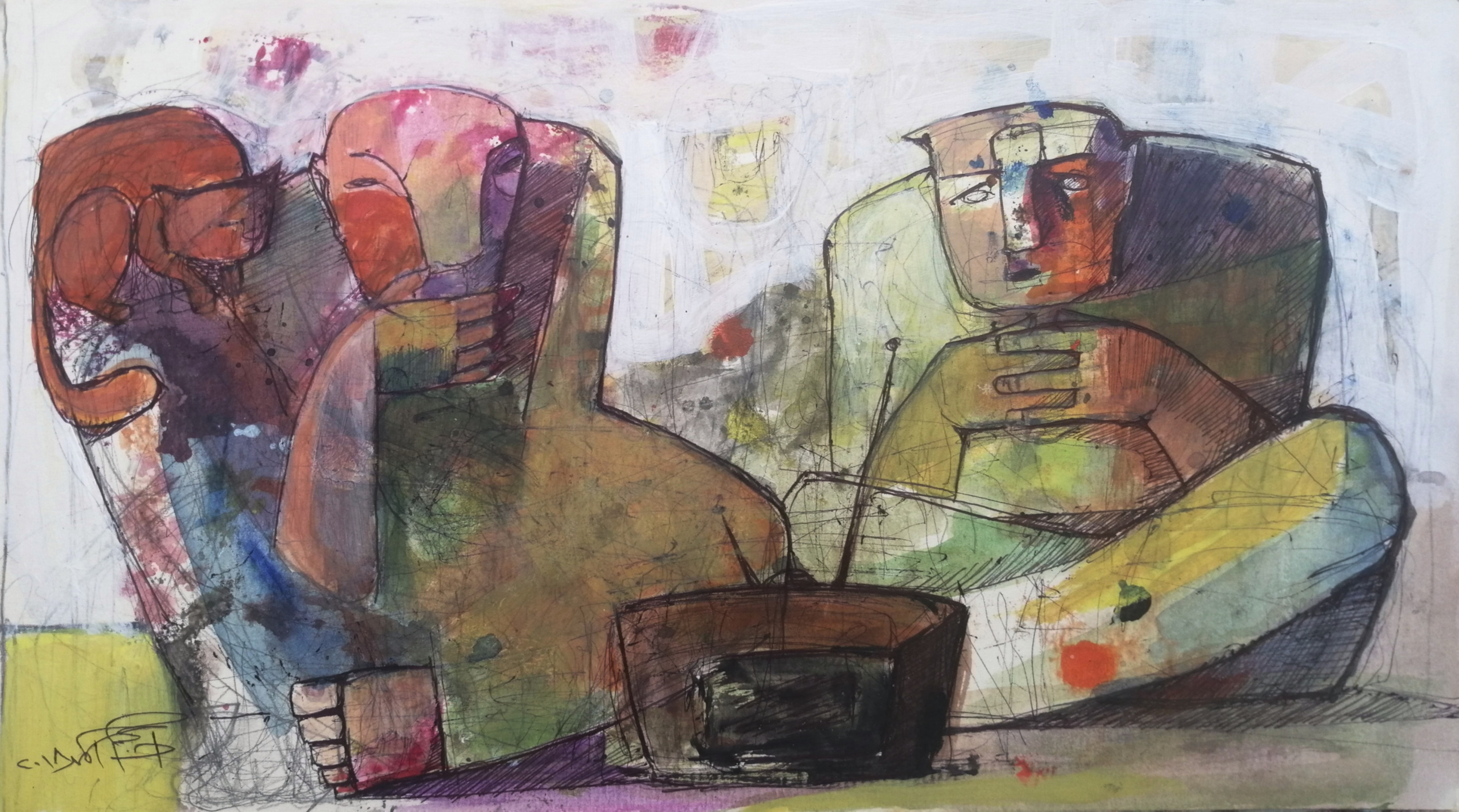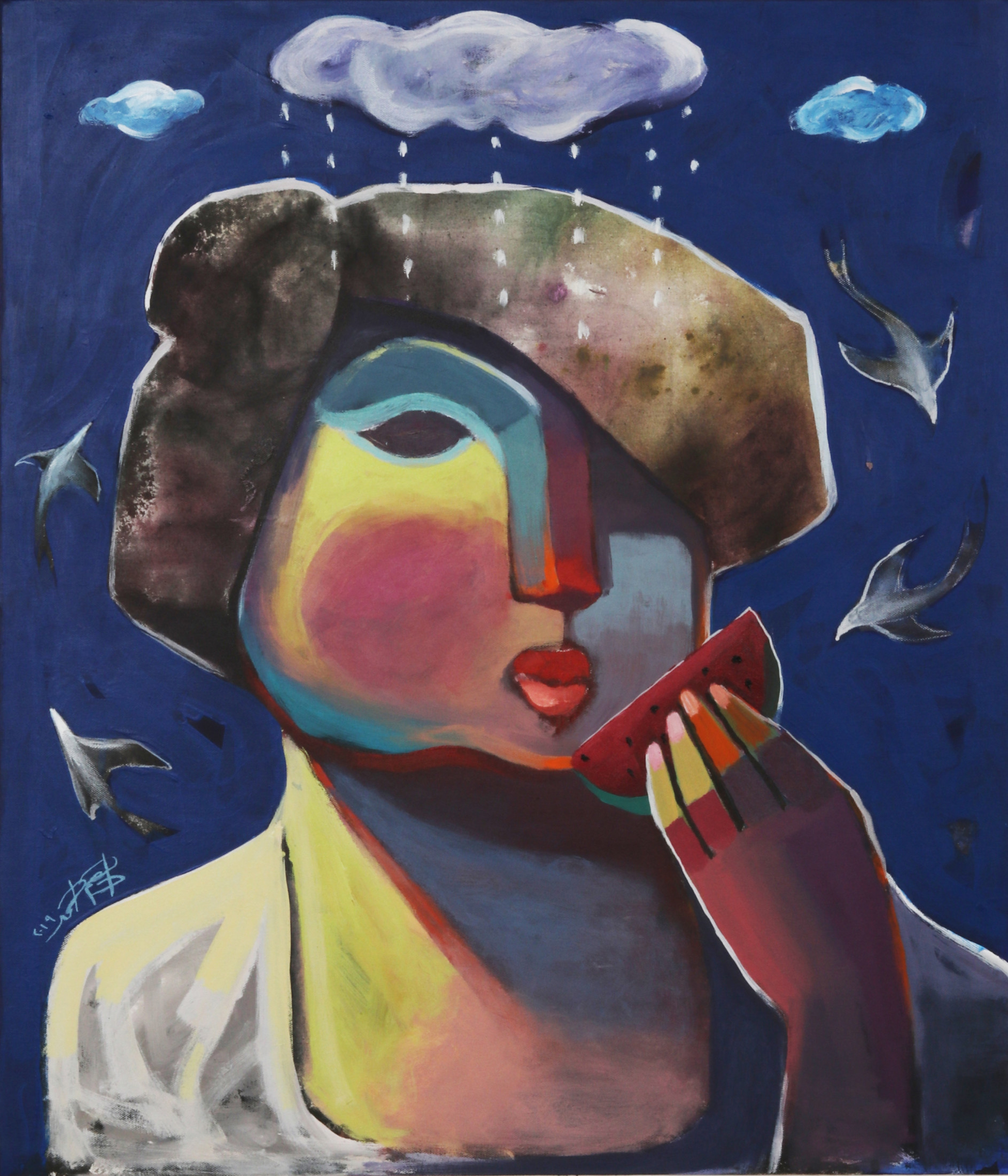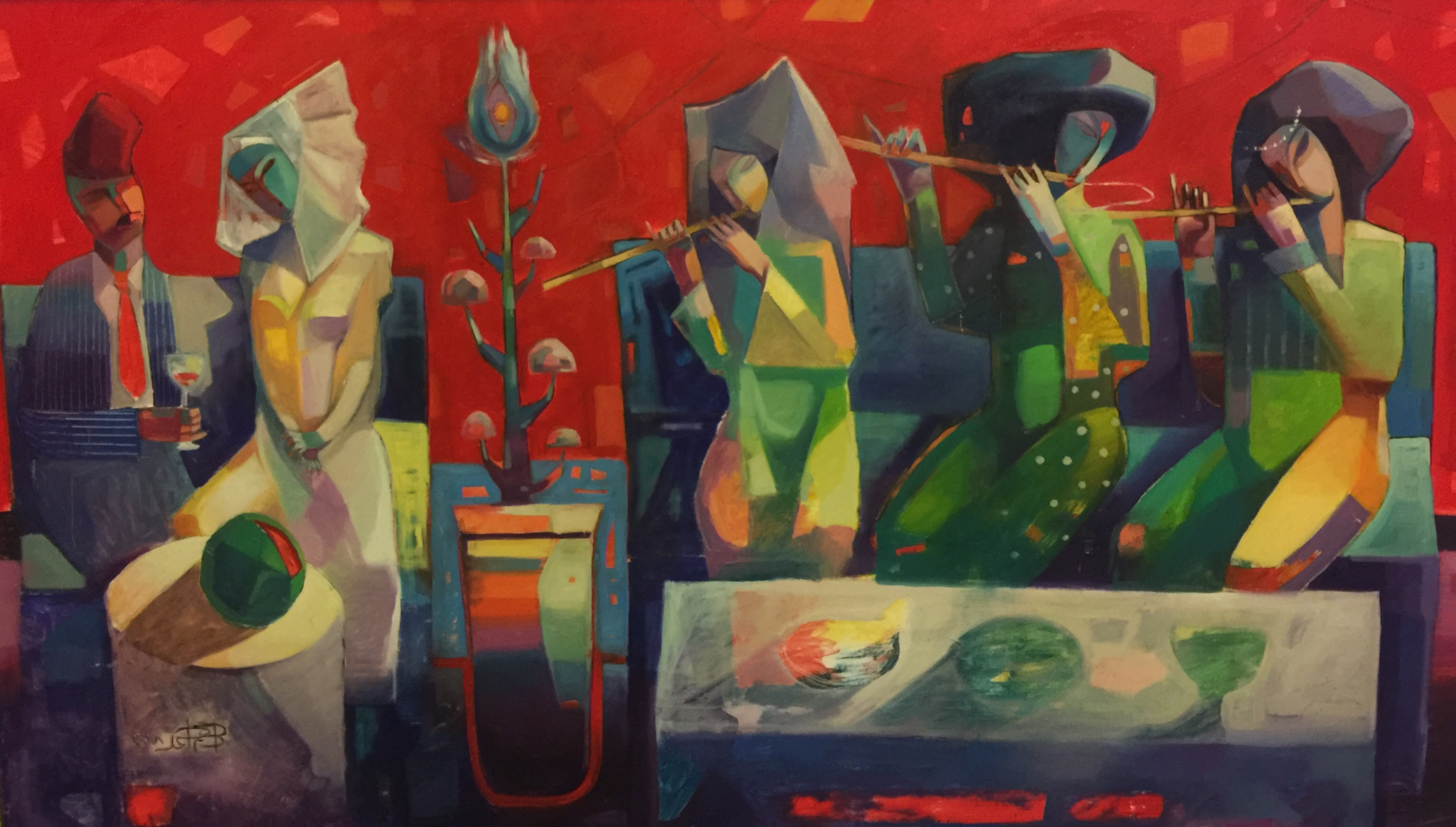 Using vibrant colours to conjure expressive and abstract compositions that echo the ideals of twentieth-century Cubism, Adham Badawi brings an invigorated energy to each work he conjures. As an artist, he always looks for the link between the past and present, the acquired and the habit, and reformulating it into his artworks with a contemporary vision. As a result, traditional views take on new meaning in his dynamic and colourful oeuvre.