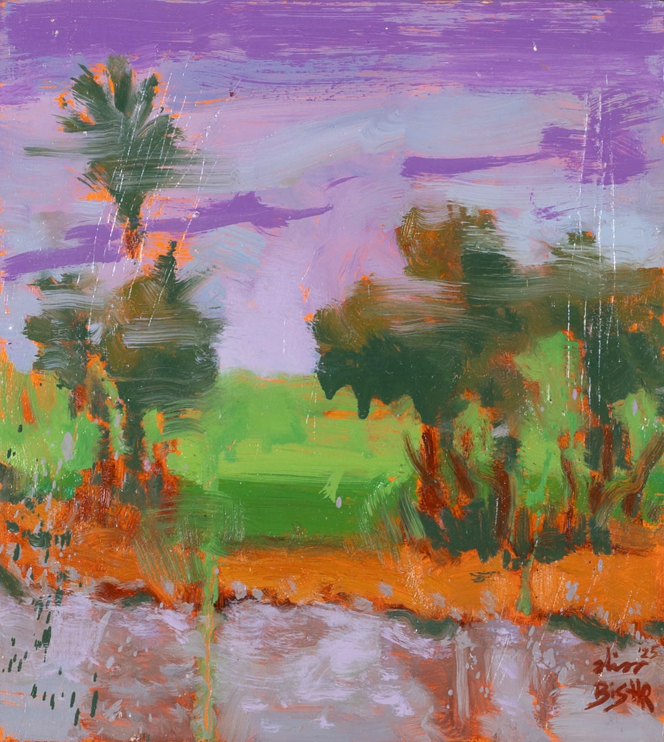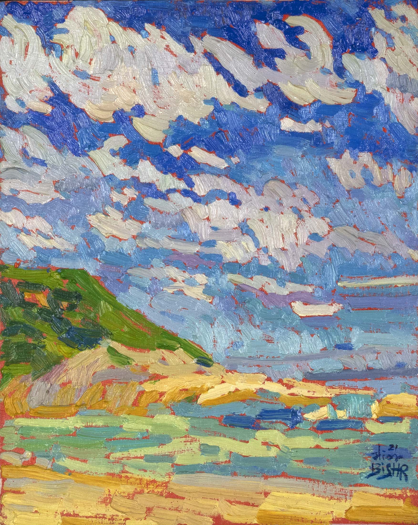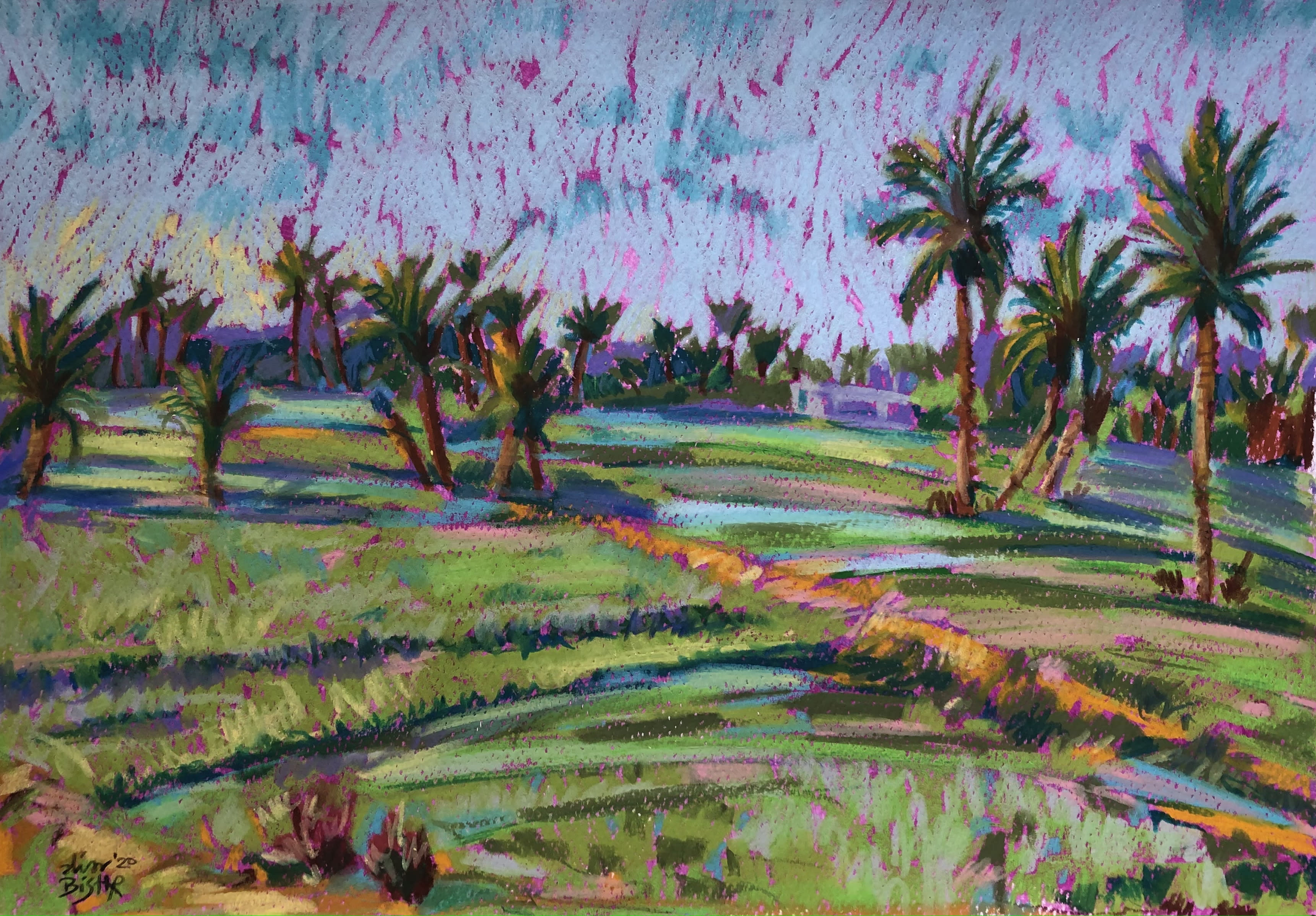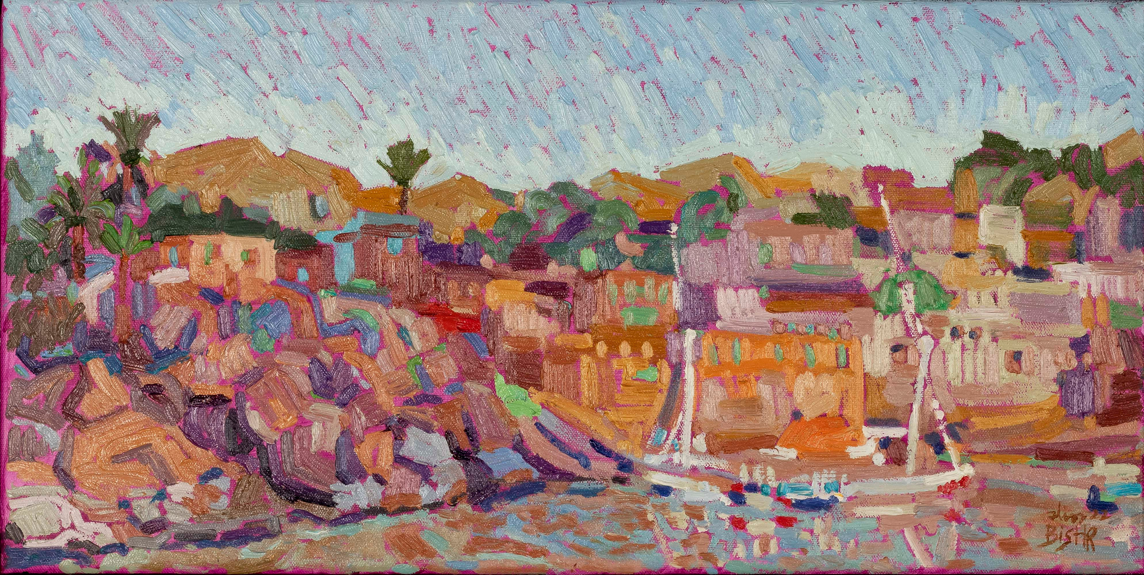 Drawing inspiration primarily from Egyptian nature and culture, her paintings balance vibrant warm and cool tones, heightening their emotional resonance. Bishr holds a BFA in Painting from Helwan University (2024) and a B.Sc. in Biotechnology from M.U.S.T (2010). Her work has been exhibited in more than 30 group shows across Cairo, Sharjah, Dubai, Ras Al Khaimah, Abu Dhabi, and New York.