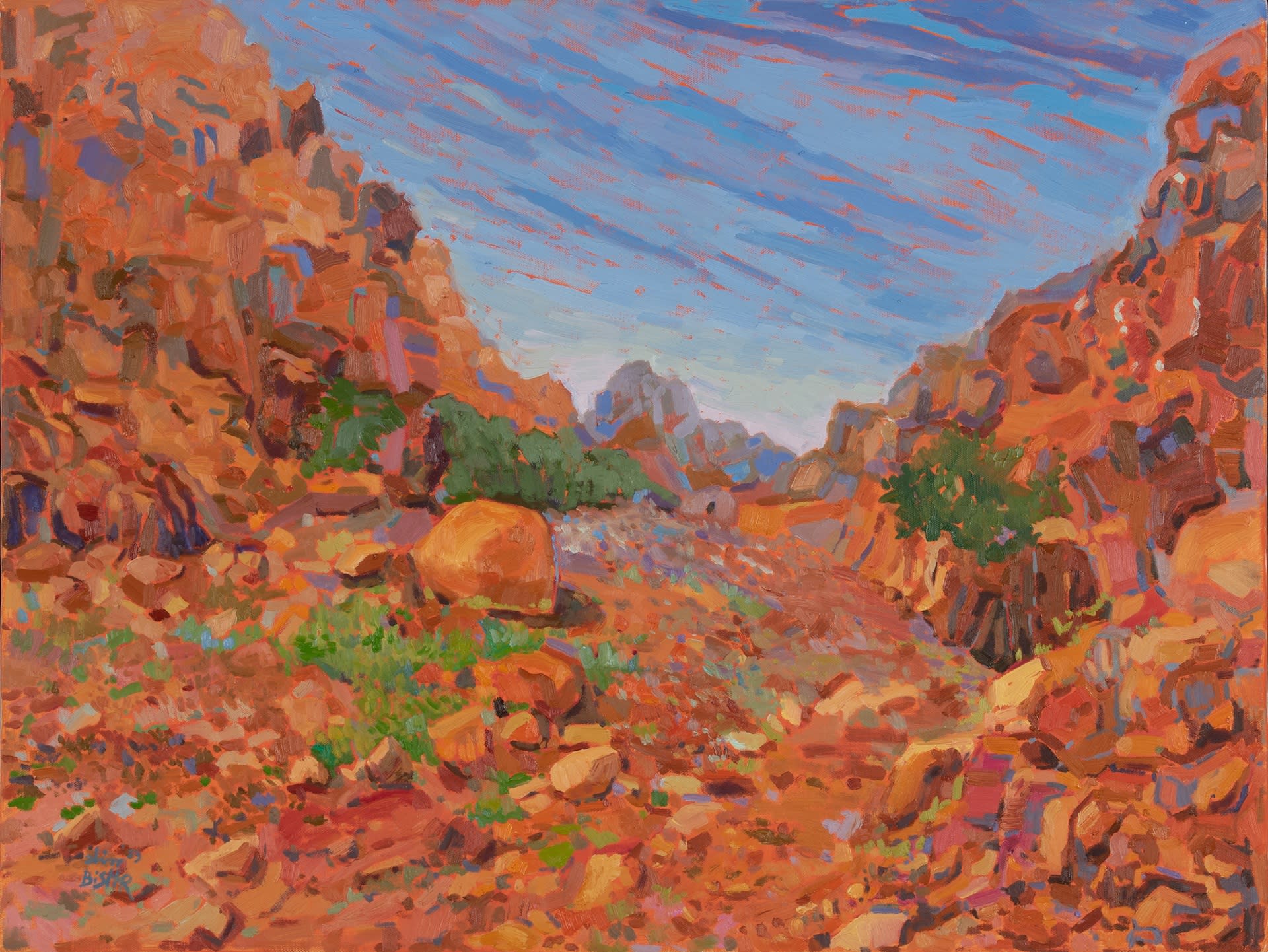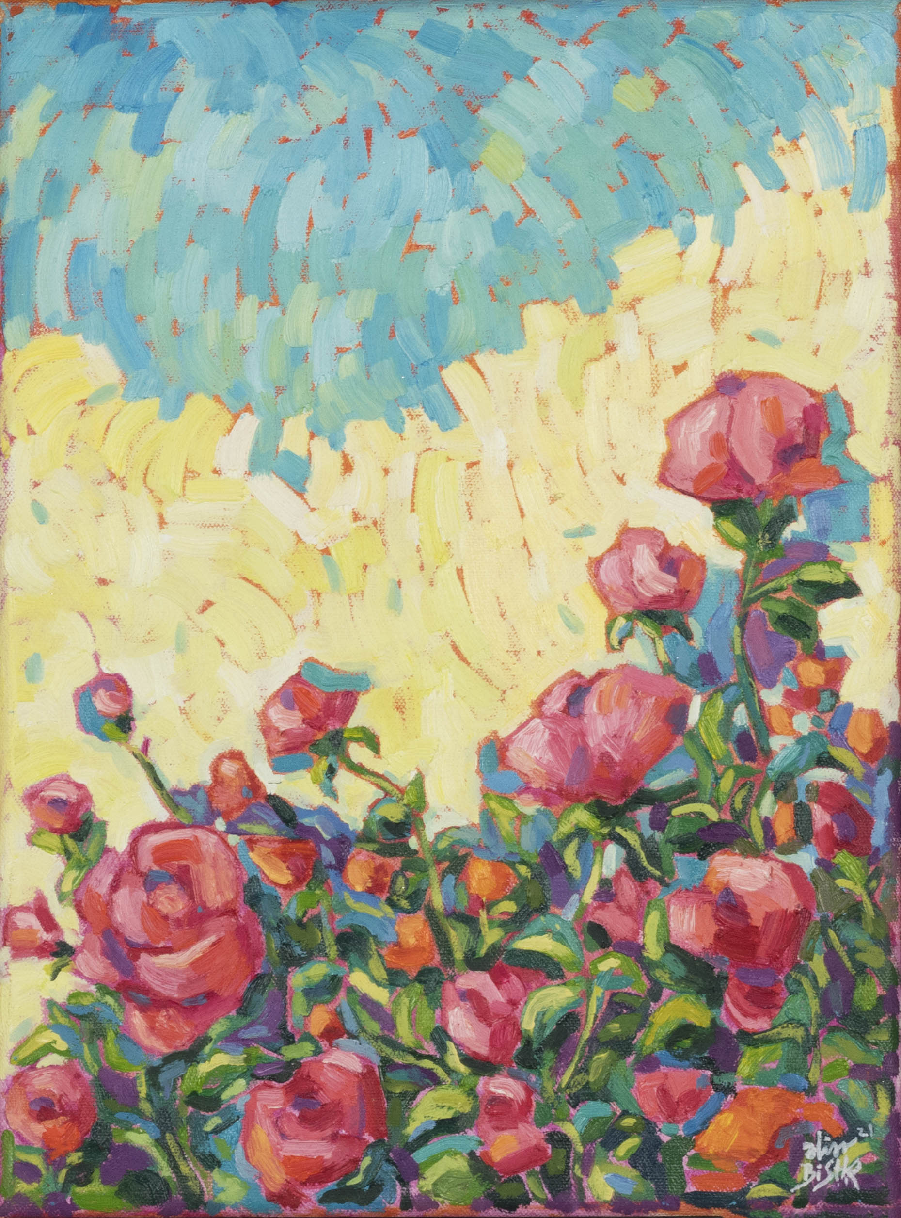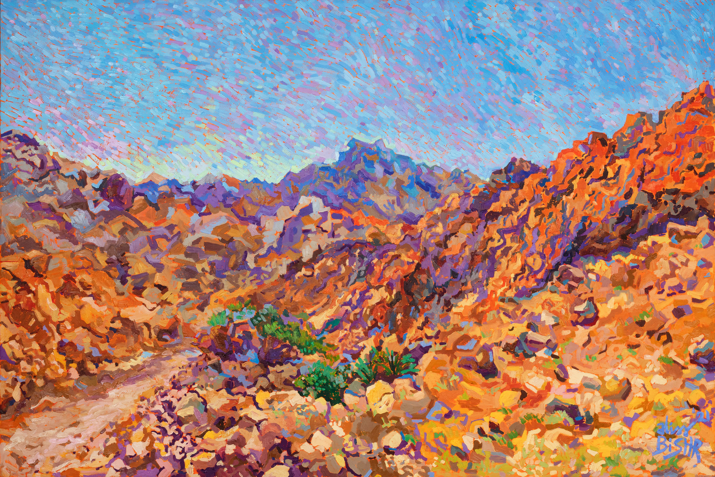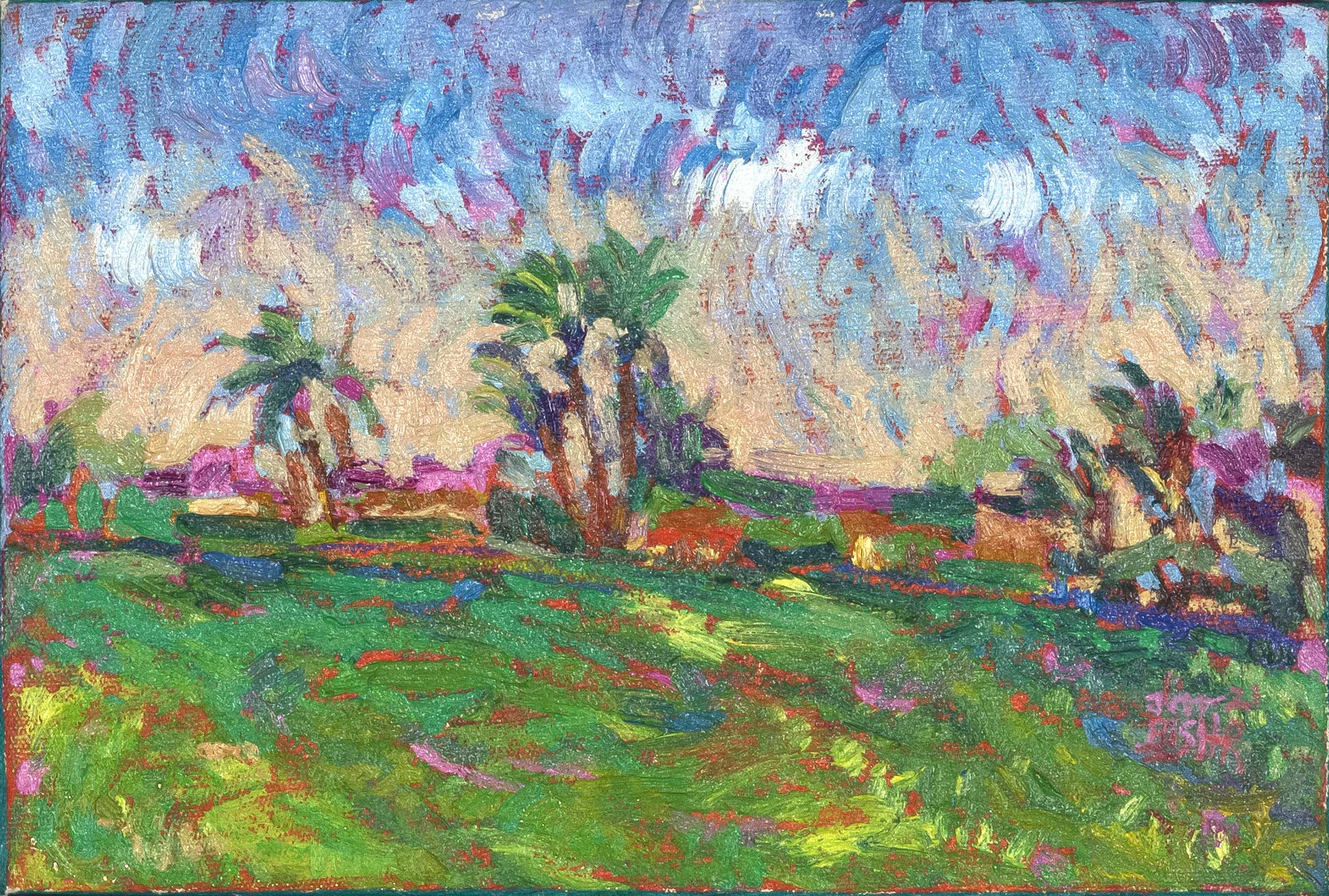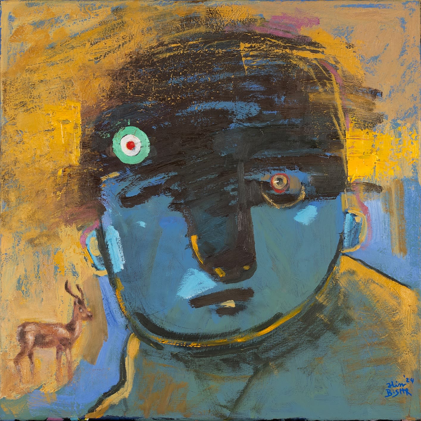 Drawing inspiration primarily from Egyptian nature and culture, her paintings balance vibrant warm and cool tones, heightening their emotional resonance. Bishr holds a BFA in Painting from Helwan University (2024) and a B.Sc. in Biotechnology from M.U.S.T (2010). Her work has been exhibited in more than 30 group shows across Cairo, Sharjah, Dubai, Ras Al Khaimah, Abu Dhabi, and New York.