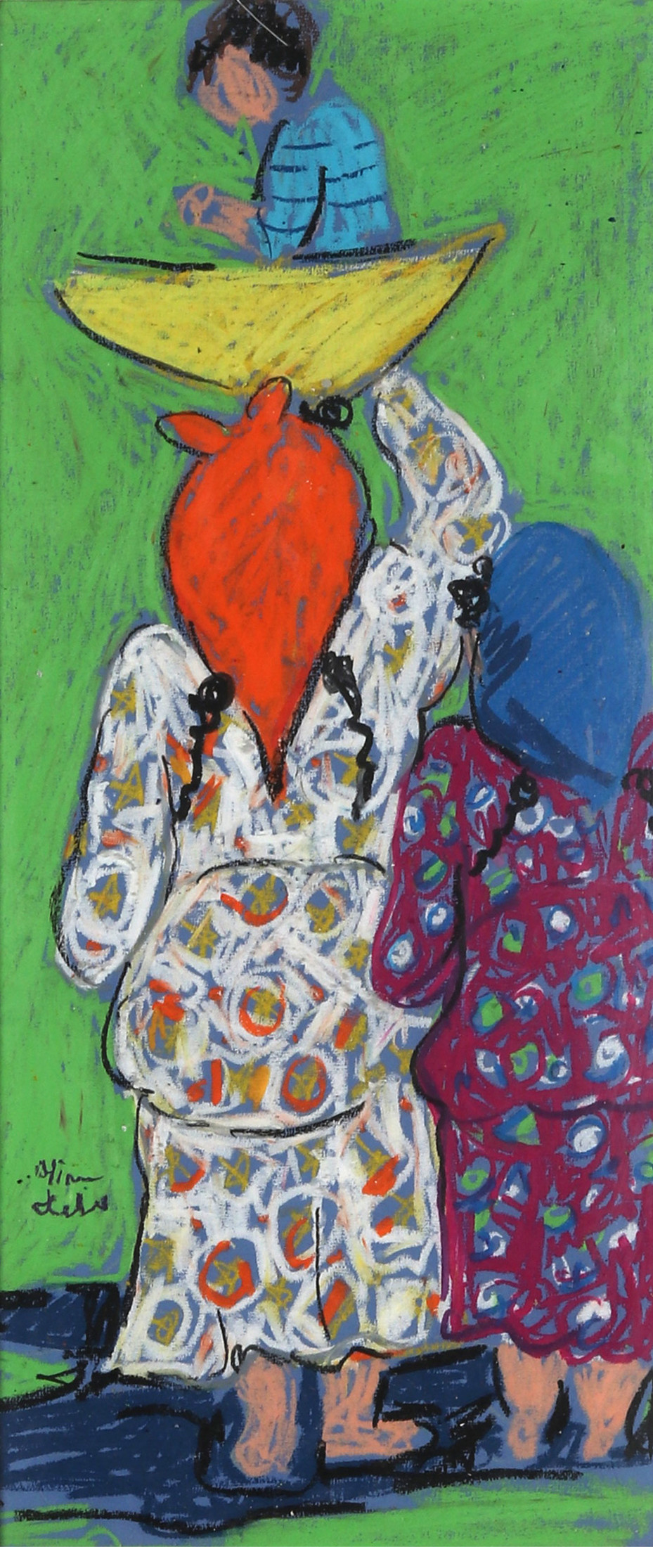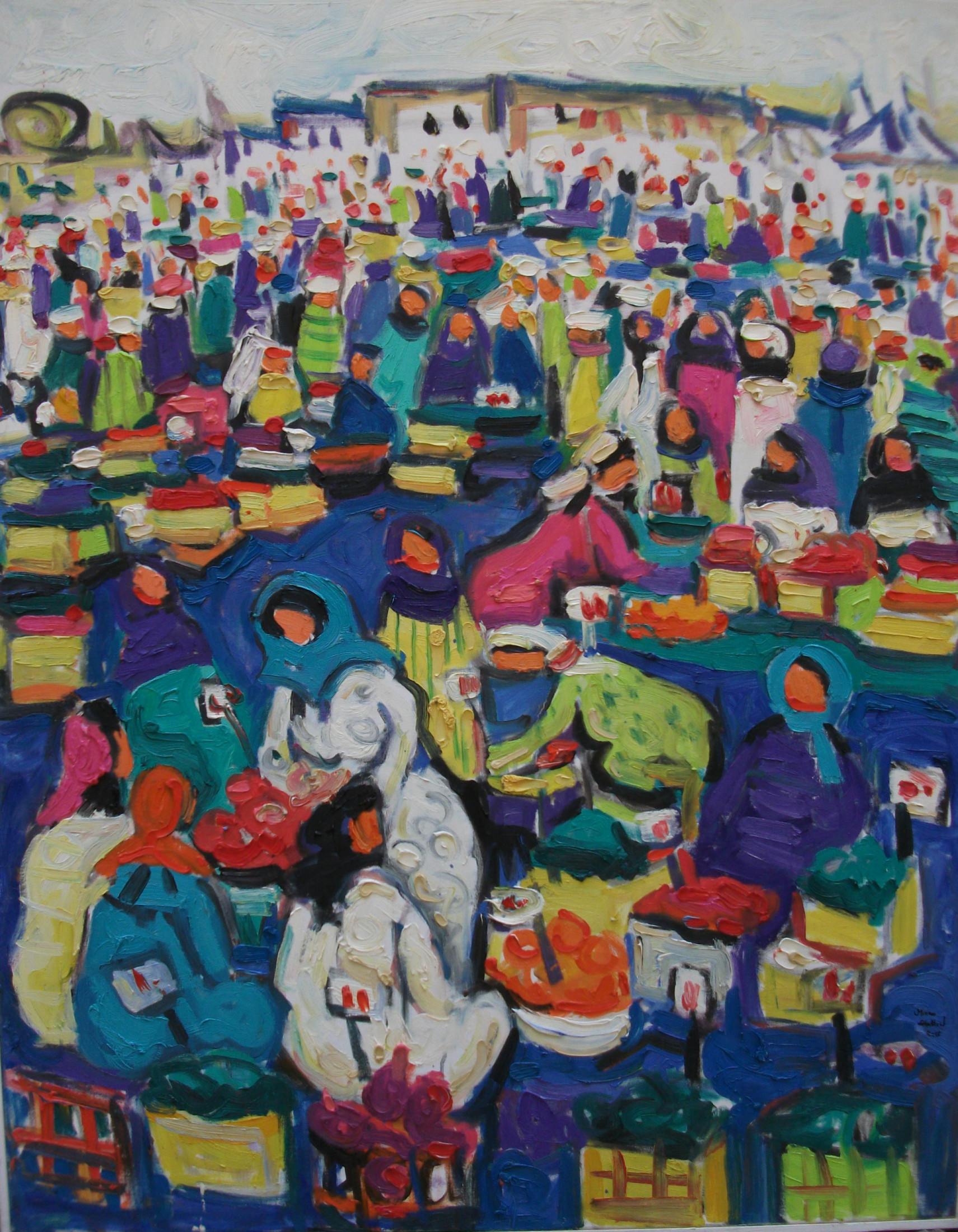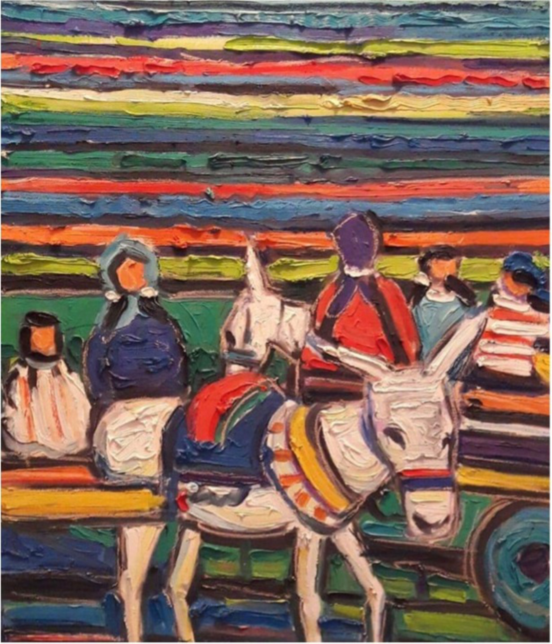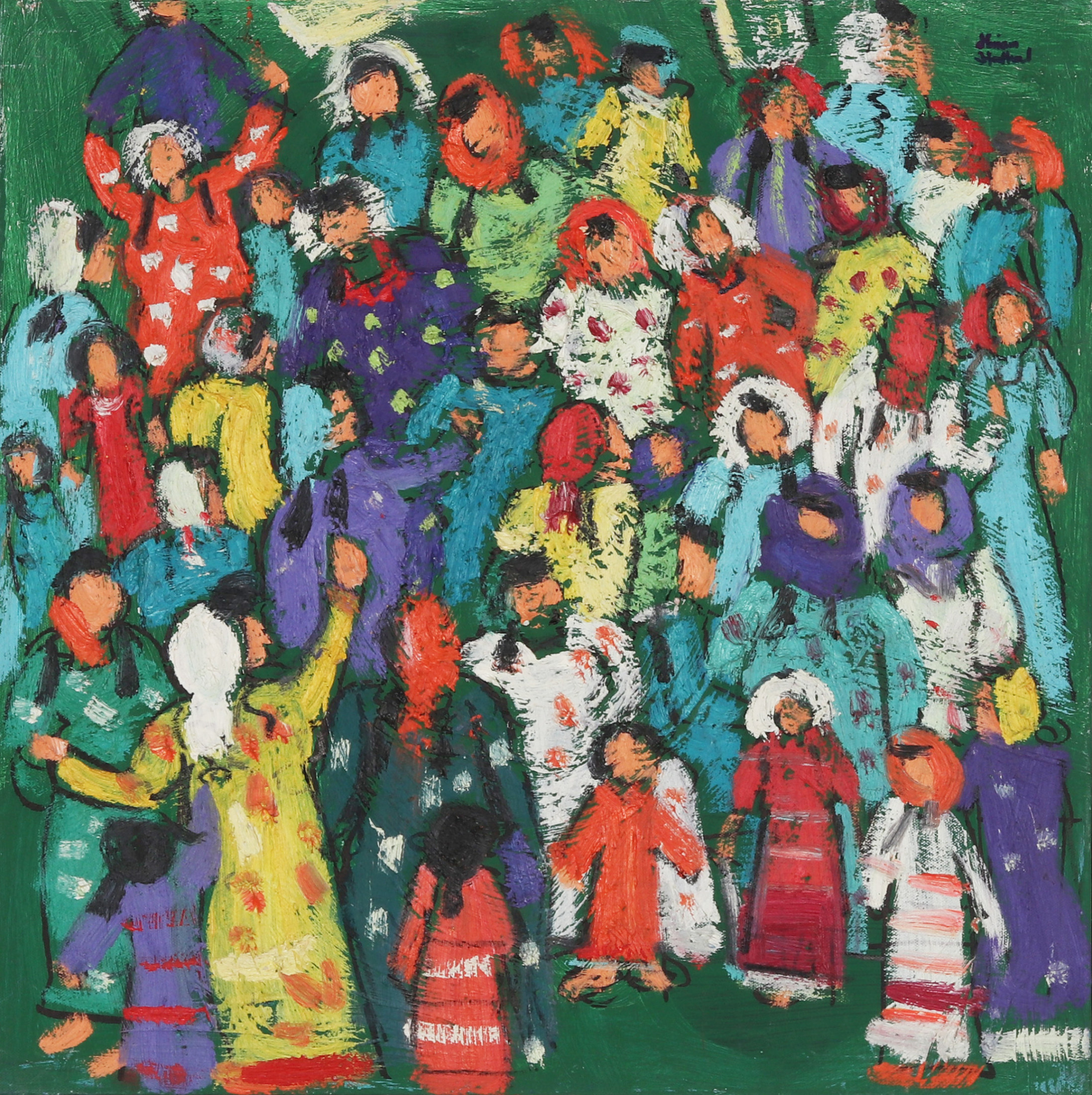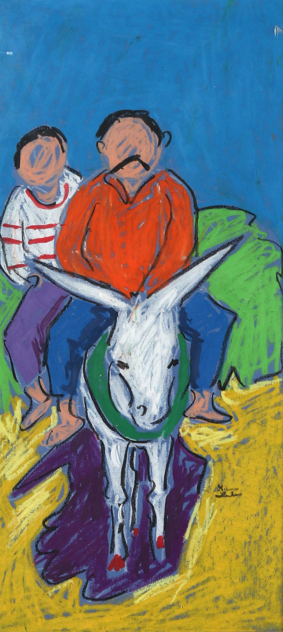 Miriam Hathout is a passionate painter who uses vibrant colors to portray scenes from the Egyptian countryside. Donkeys, dancers, and women harvesting in the fields are common themes in her work.