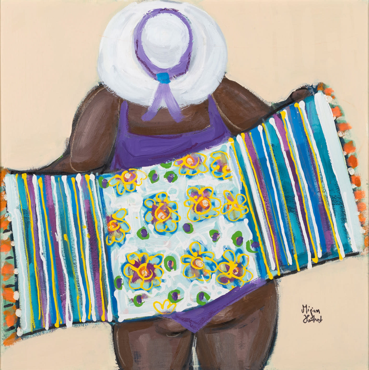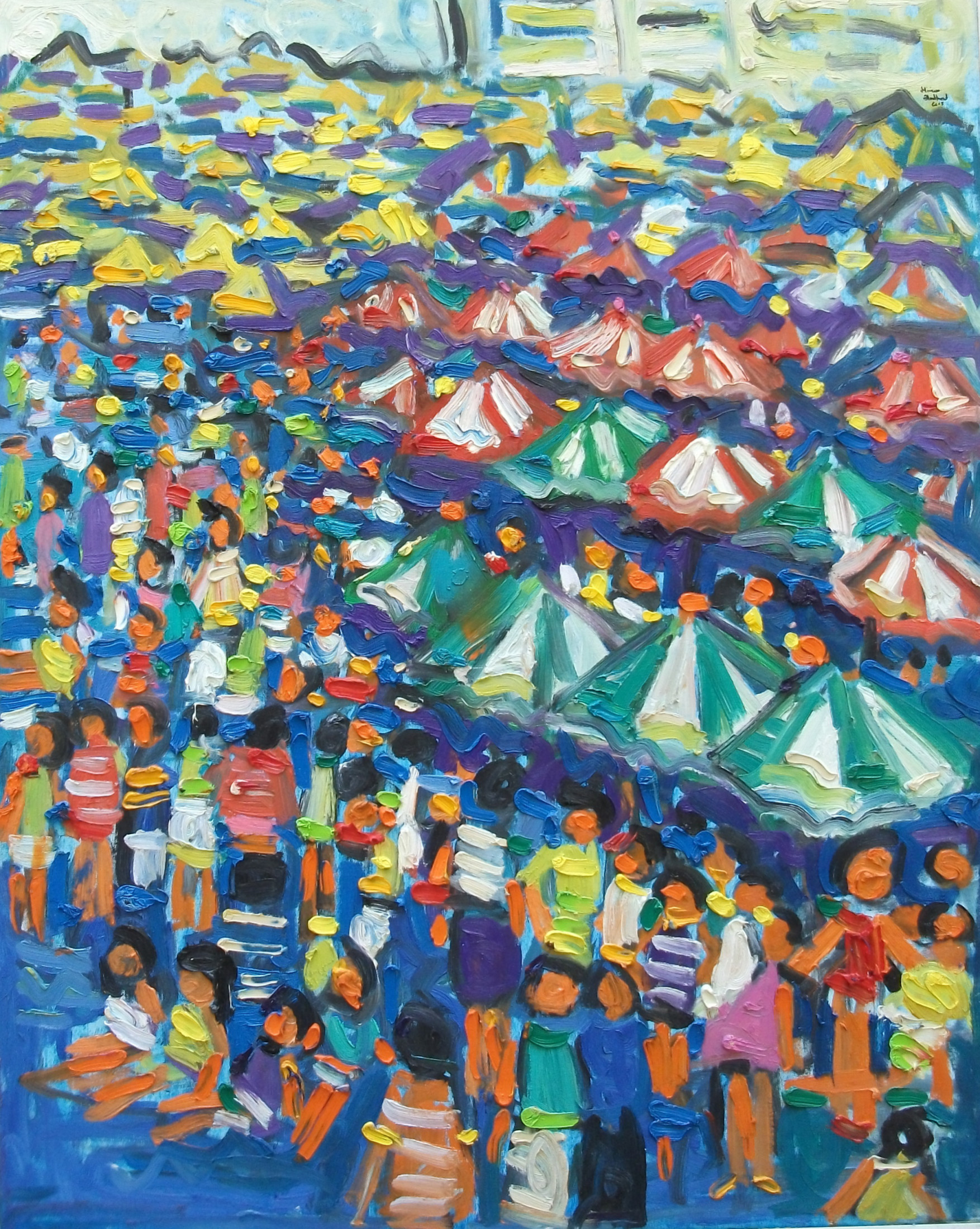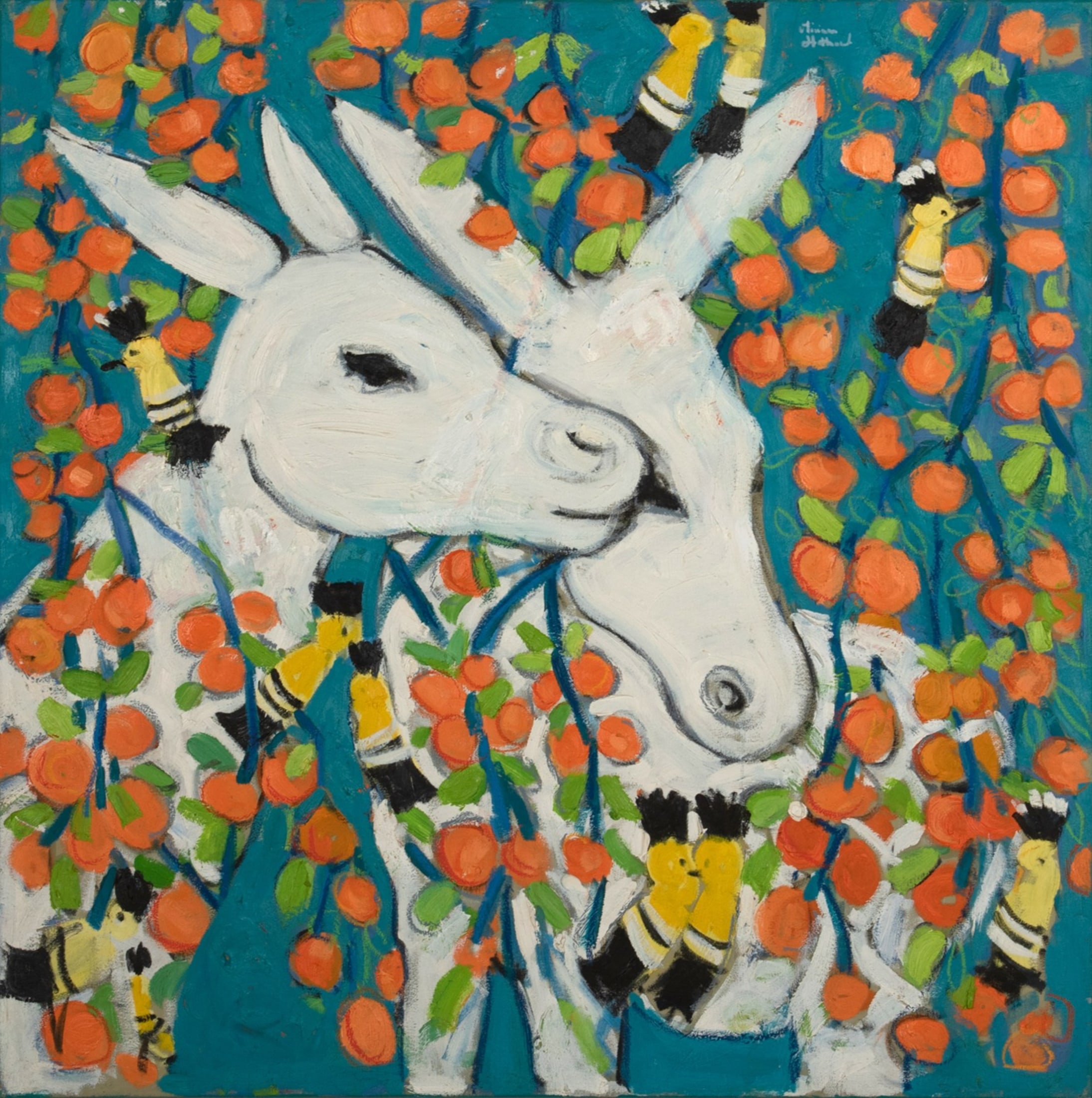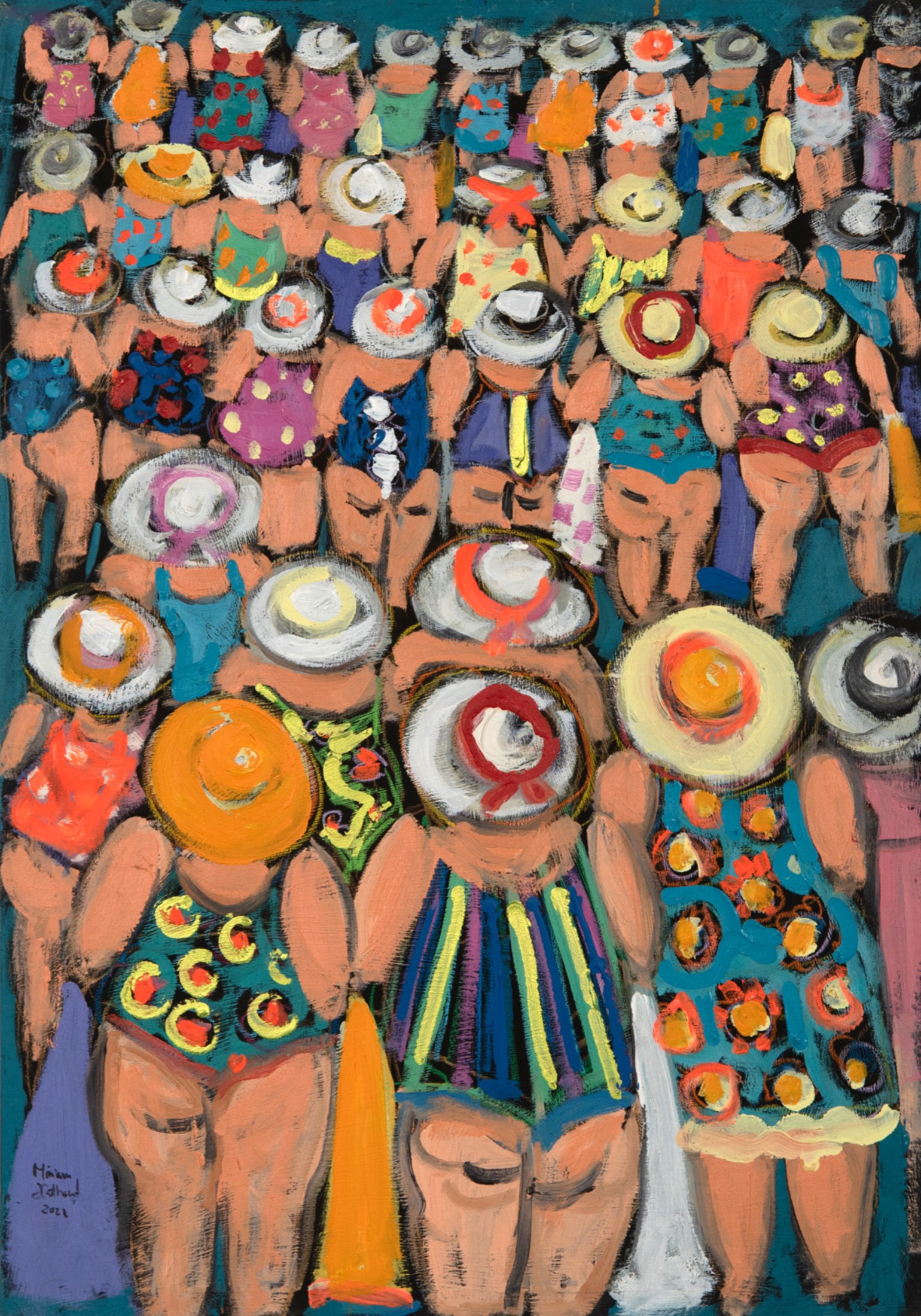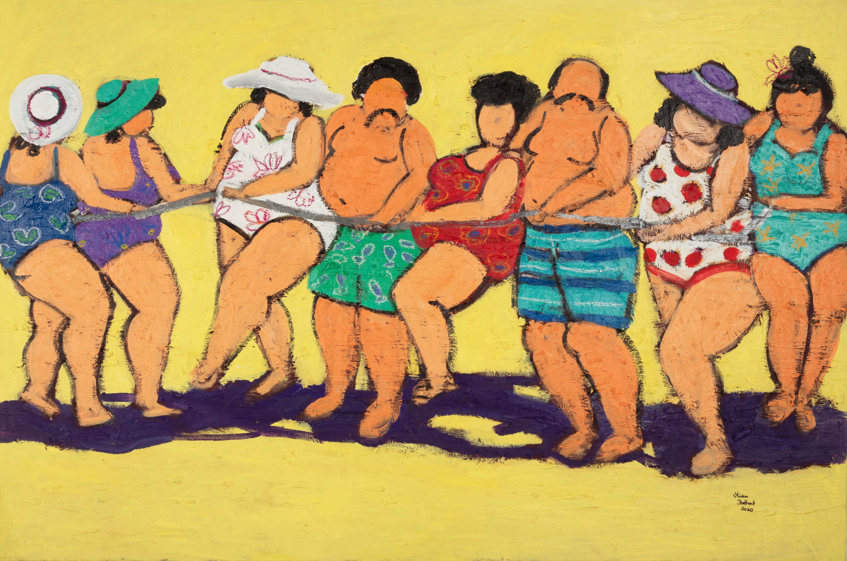 Miriam Hathout is a passionate painter who uses vibrant colors to portray scenes from the Egyptian countryside. Donkeys, dancers, and women harvesting in the fields are common themes in her work.