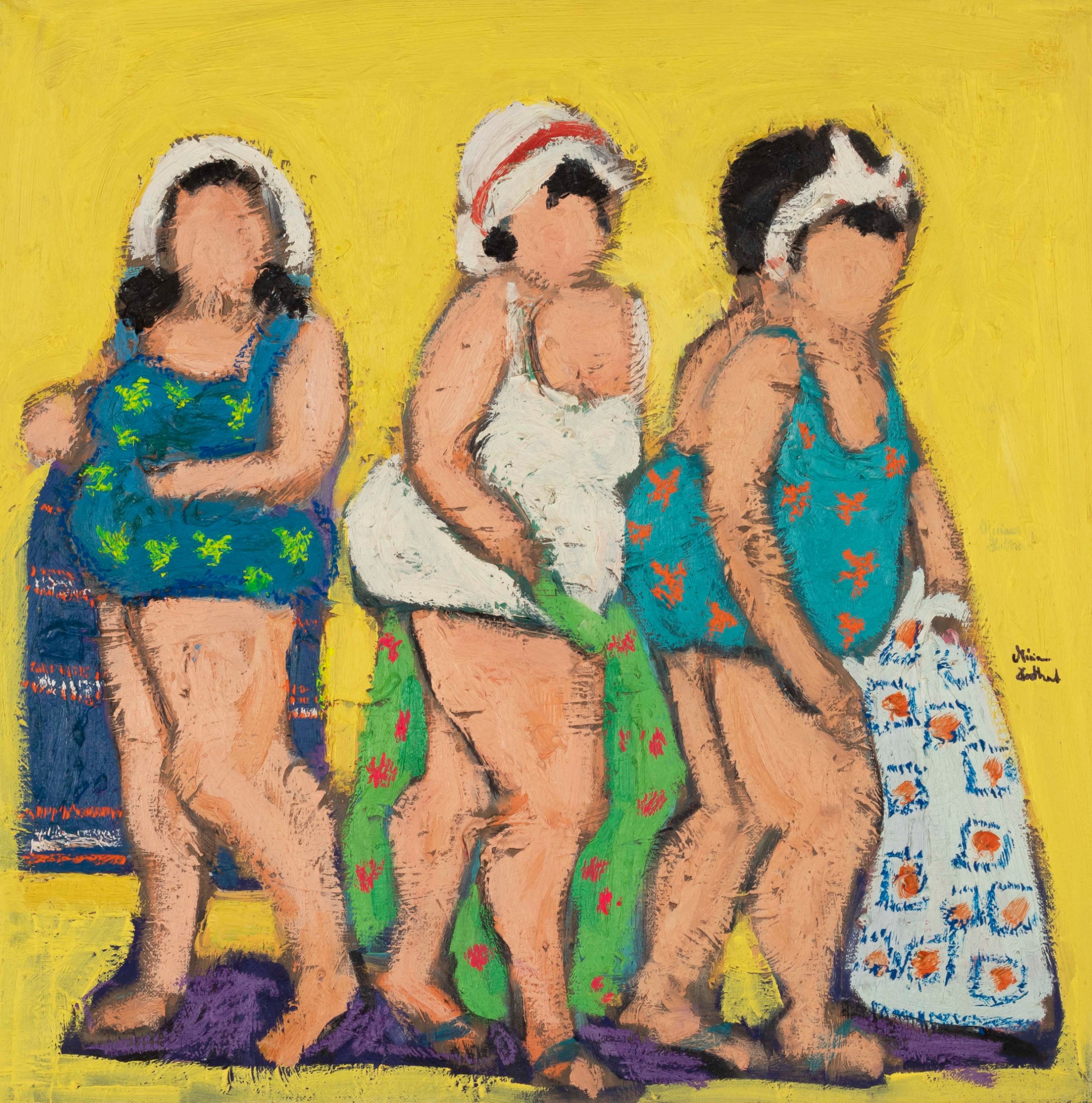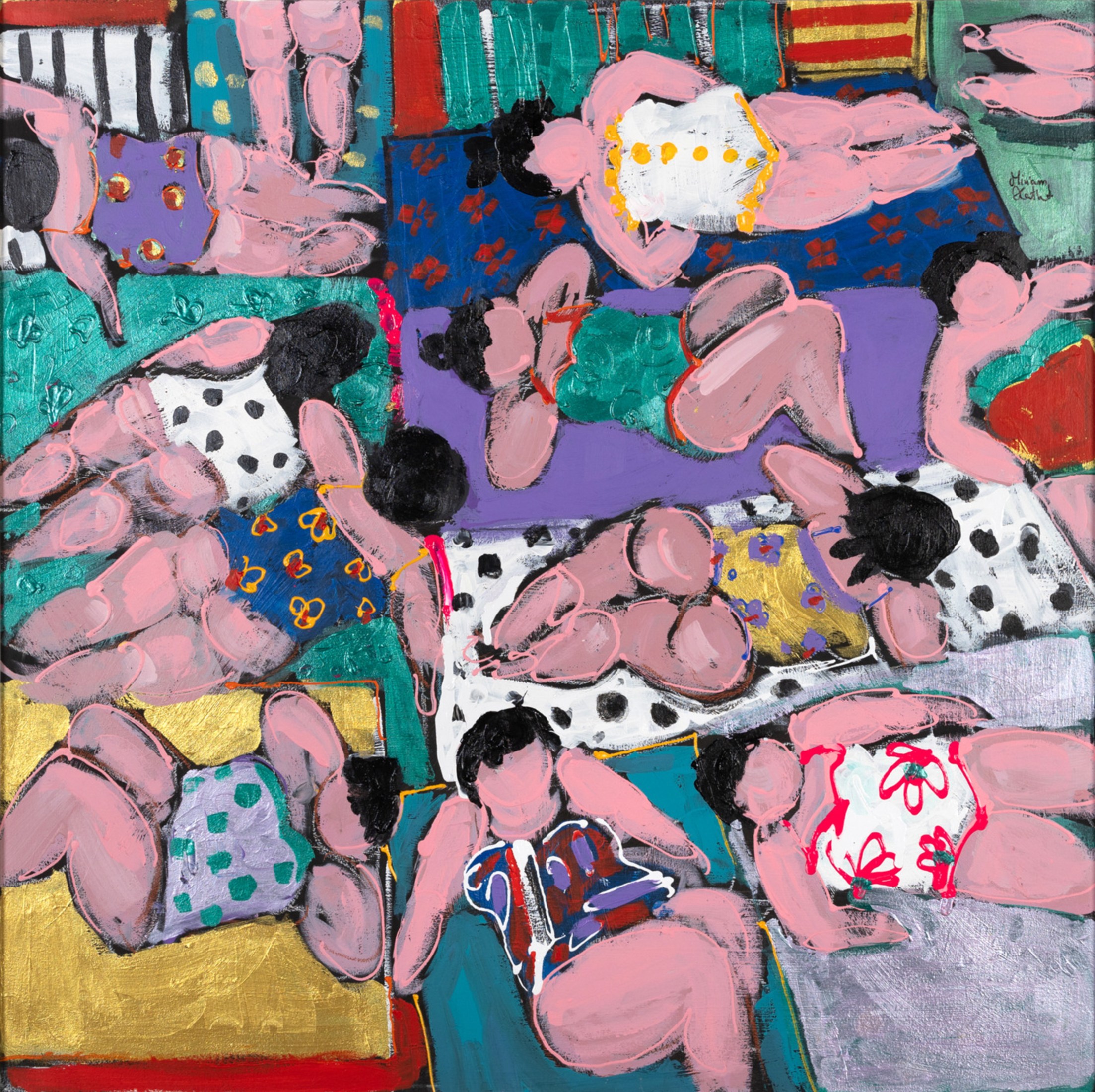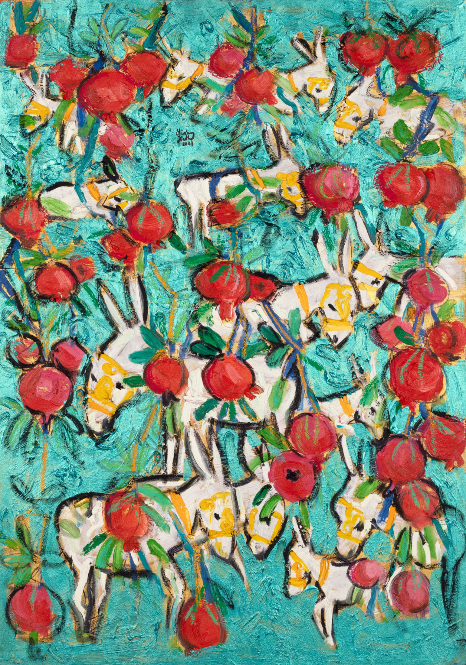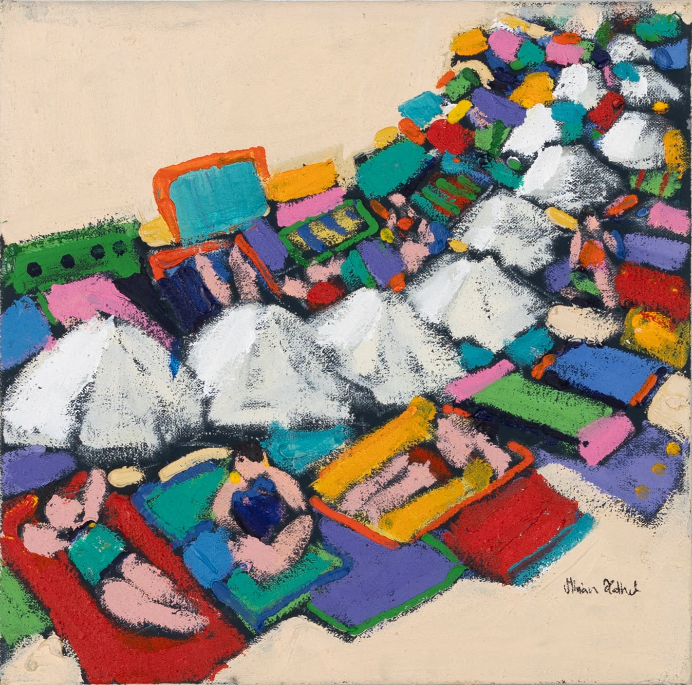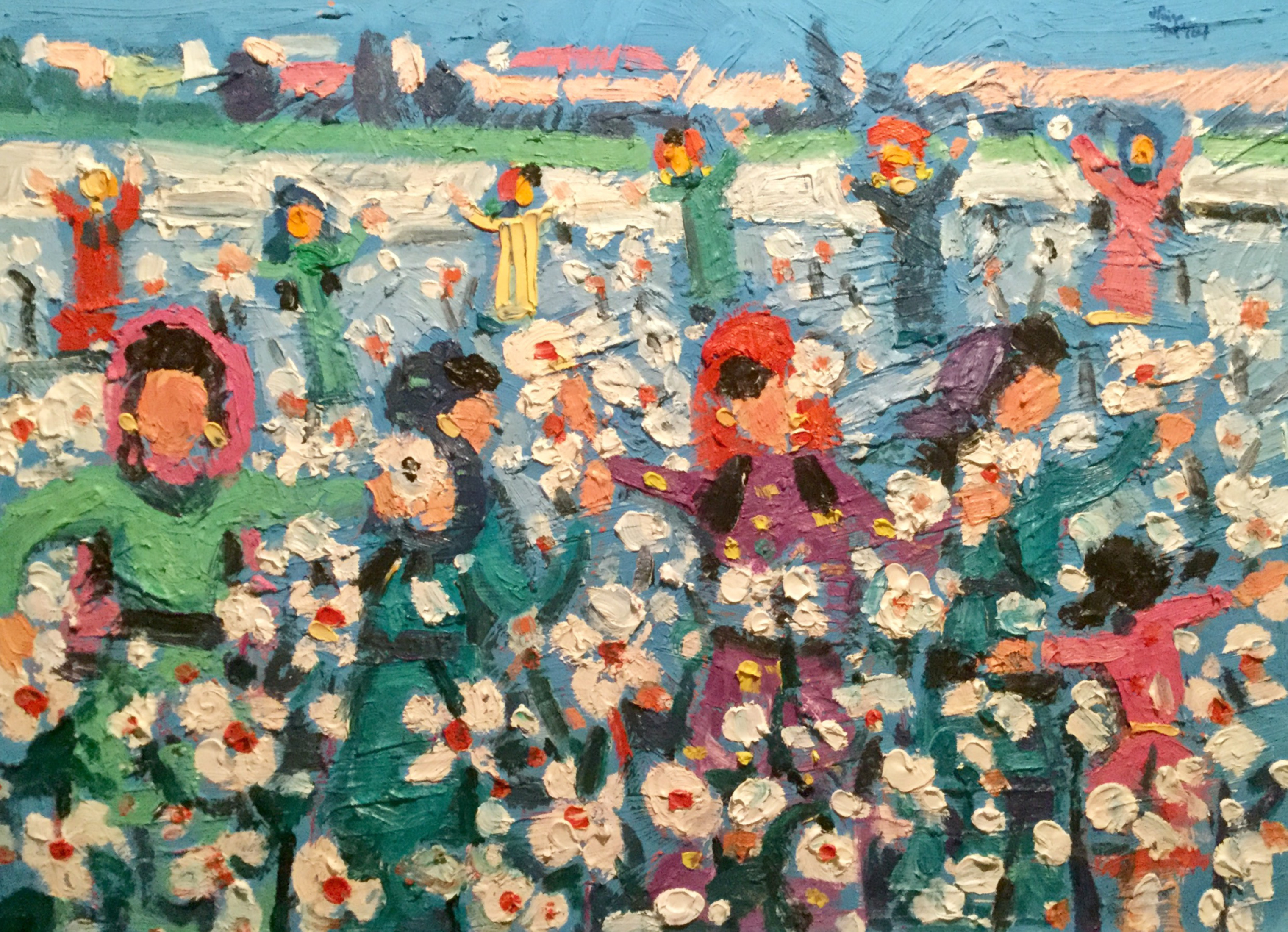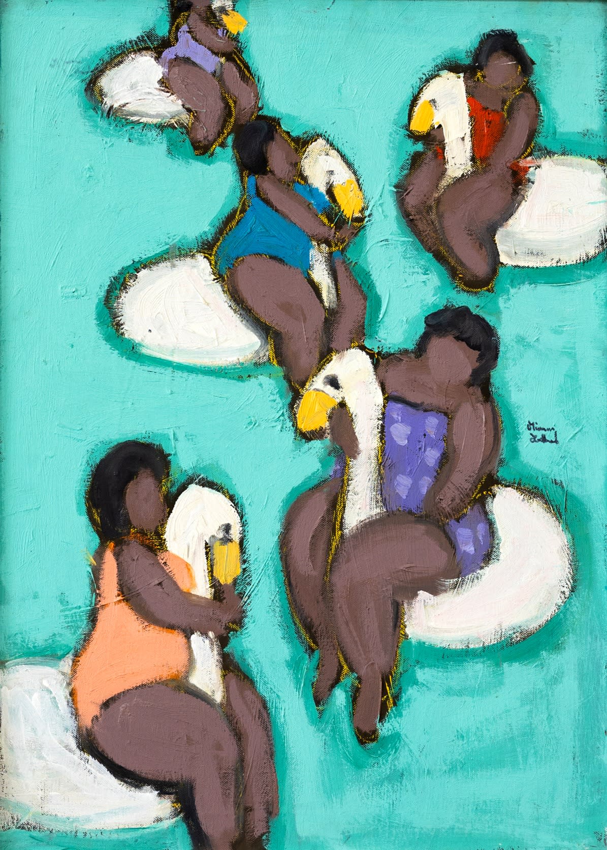 Miriam Hathout is a passionate painter who uses vibrant colors to portray scenes from the Egyptian countryside. Donkeys, dancers, and women harvesting in the fields are common themes in her work.
