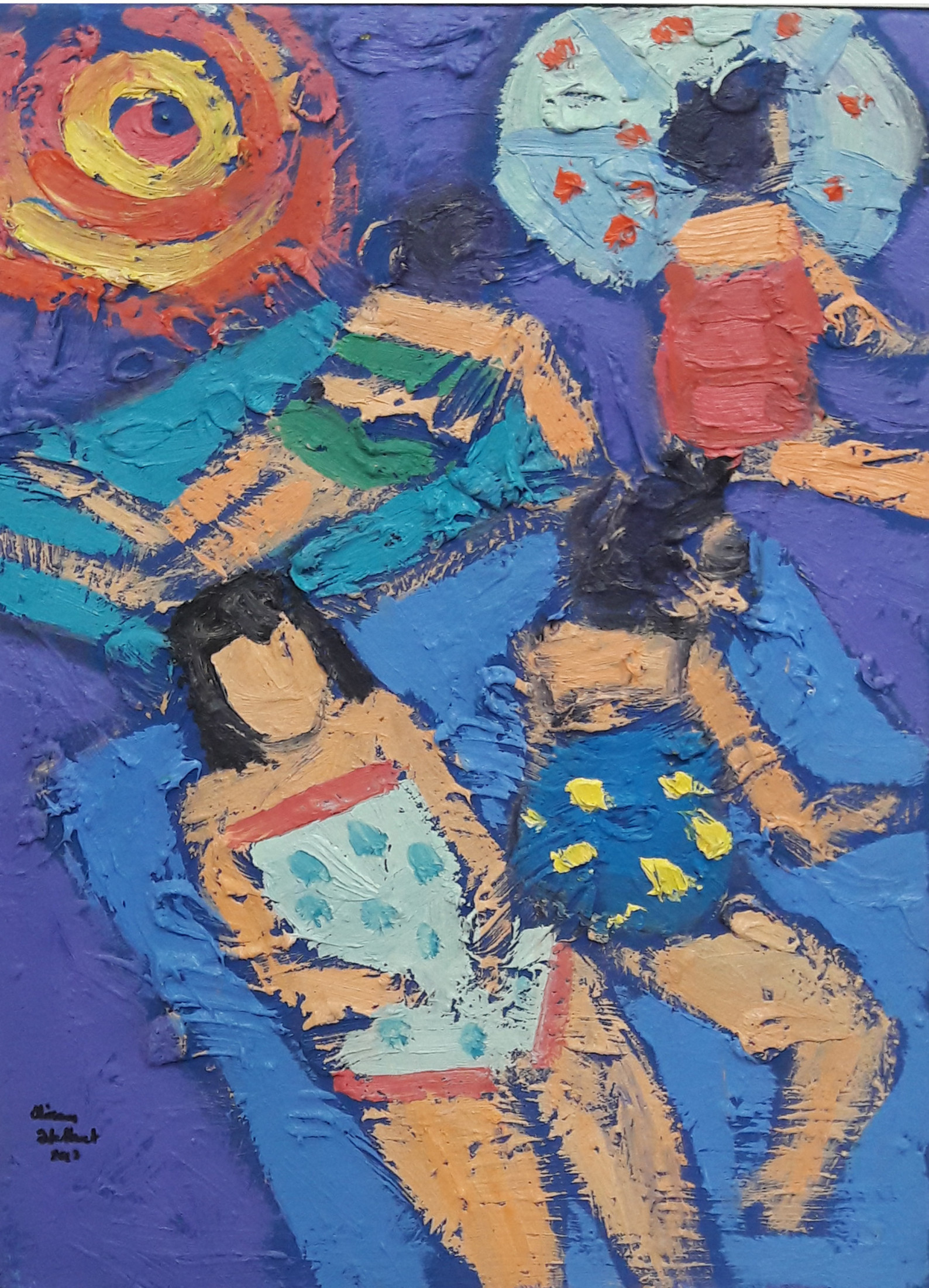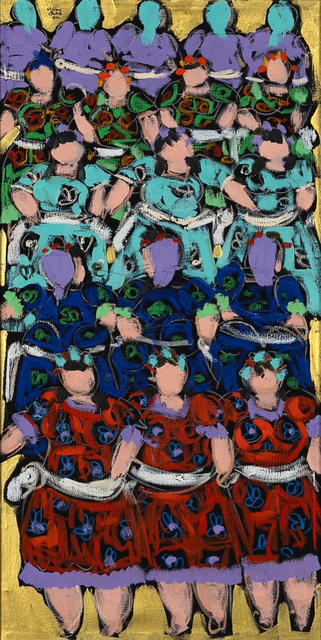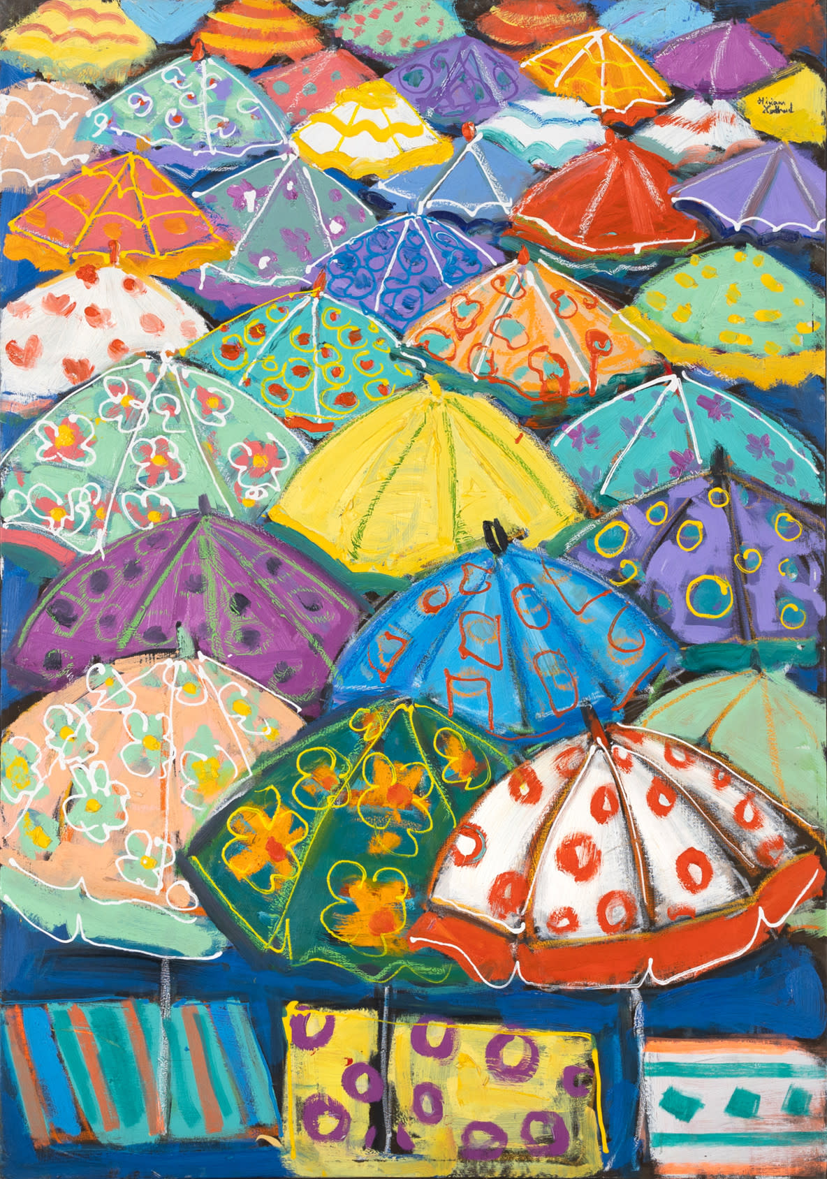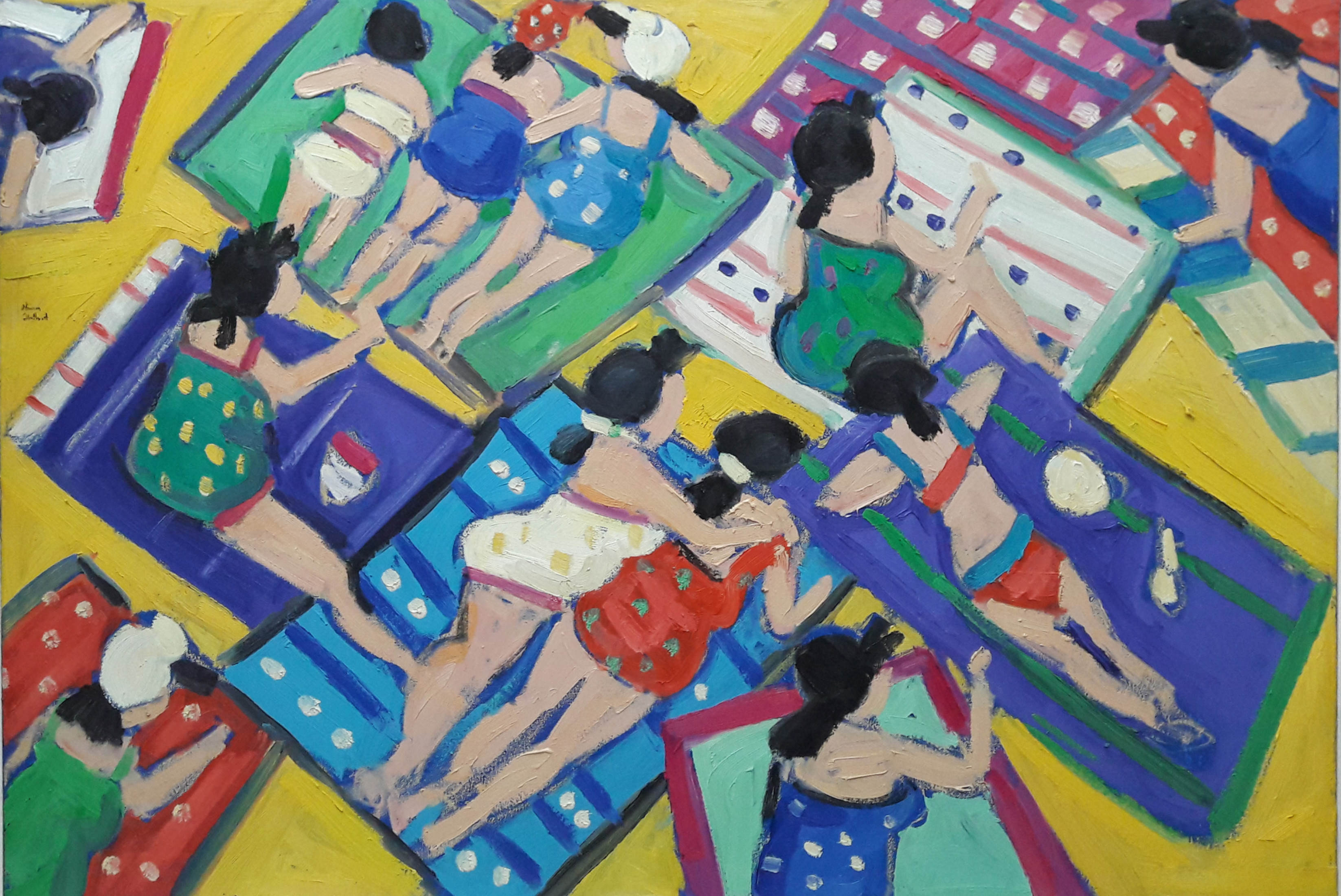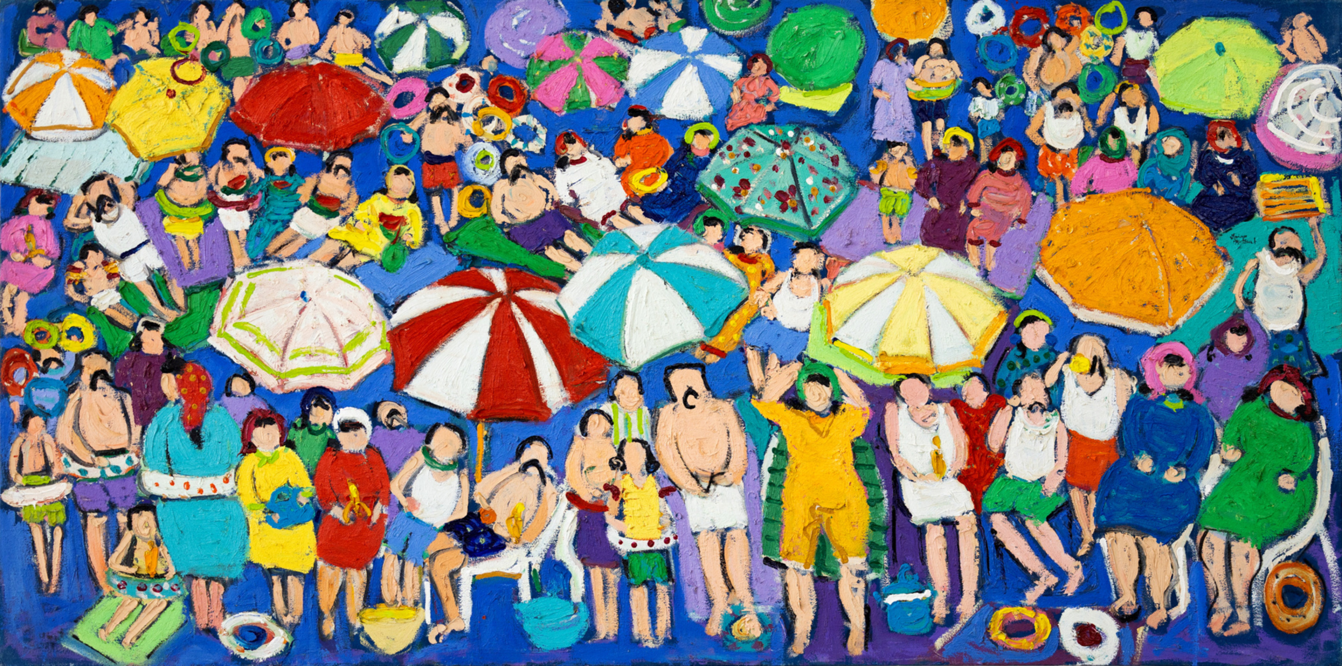 Miriam Hathout is a passionate painter who uses vibrant colors to portray scenes from the Egyptian countryside. Donkeys, dancers, and women harvesting in the fields are common themes in her work.