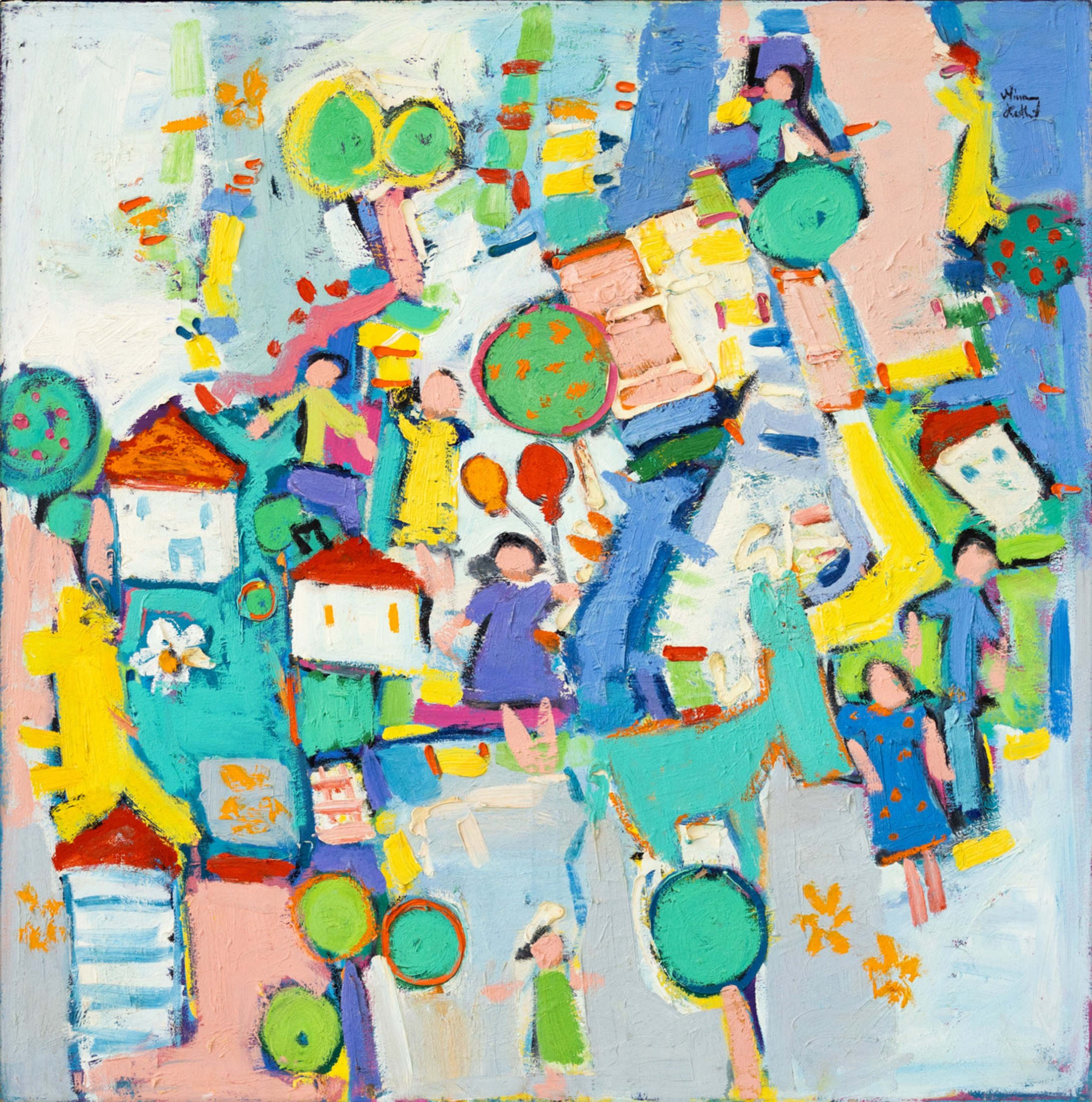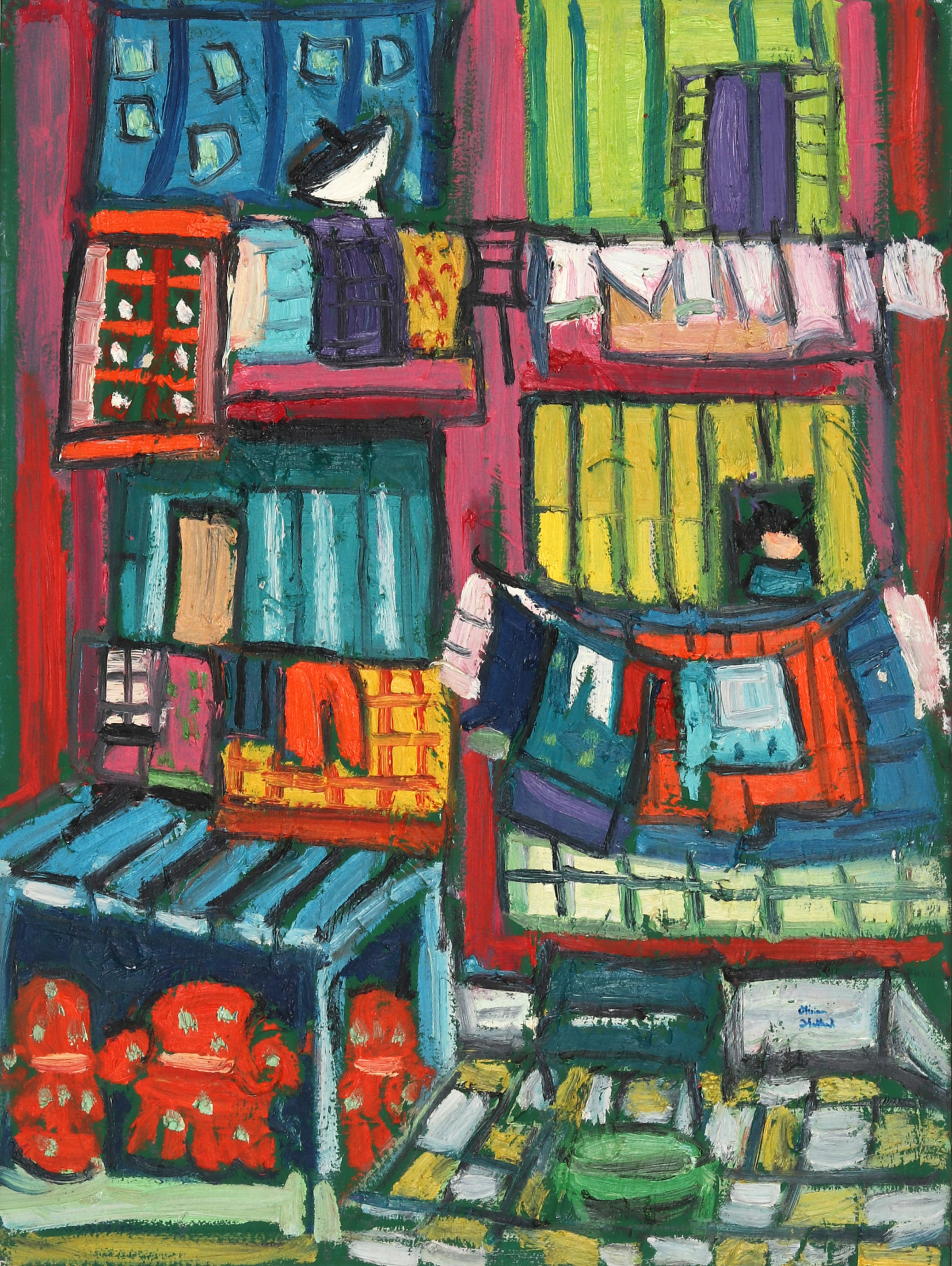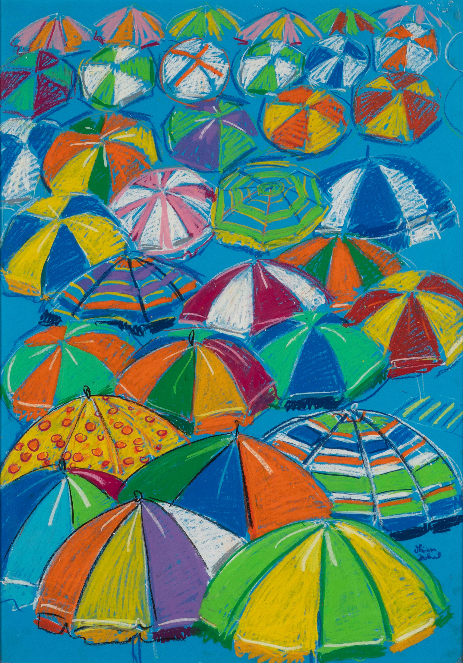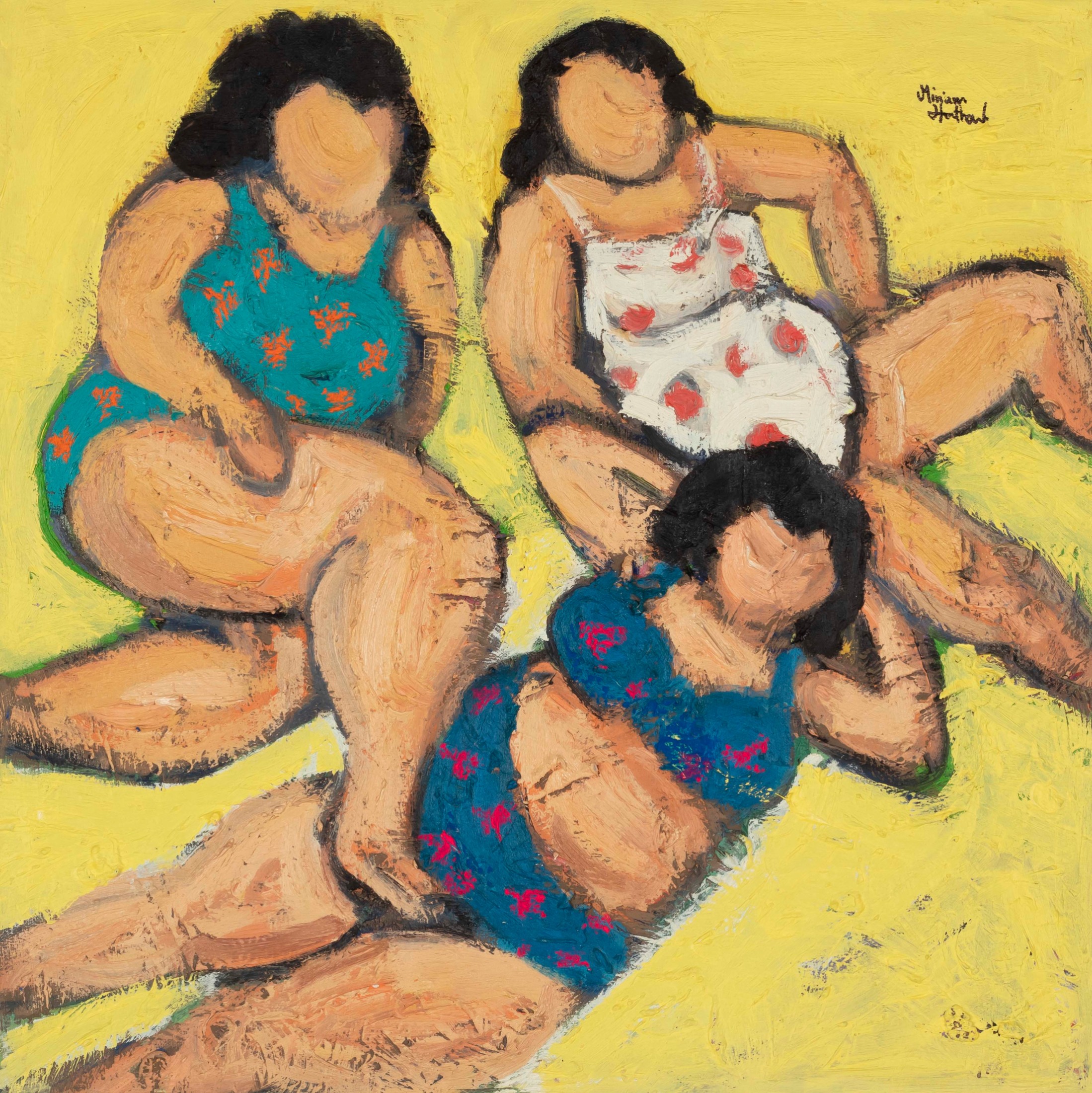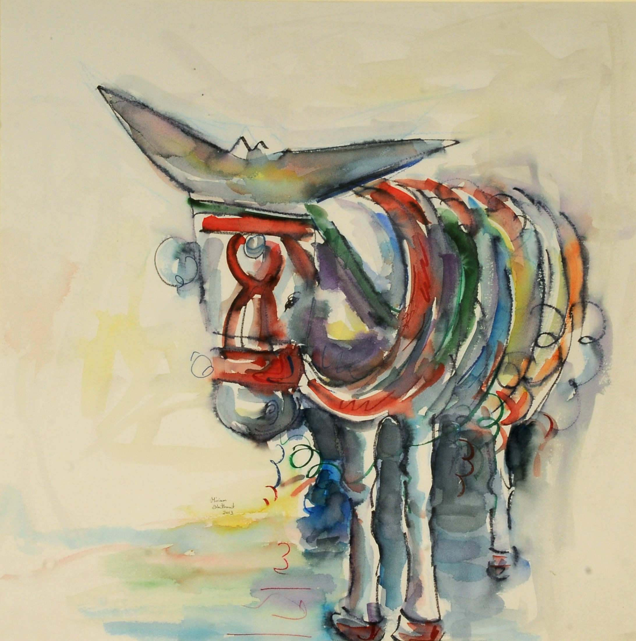 Miriam Hathout is a passionate painter who uses vibrant colors to portray scenes from the Egyptian countryside. Donkeys, dancers, and women harvesting in the fields are common themes in her work.