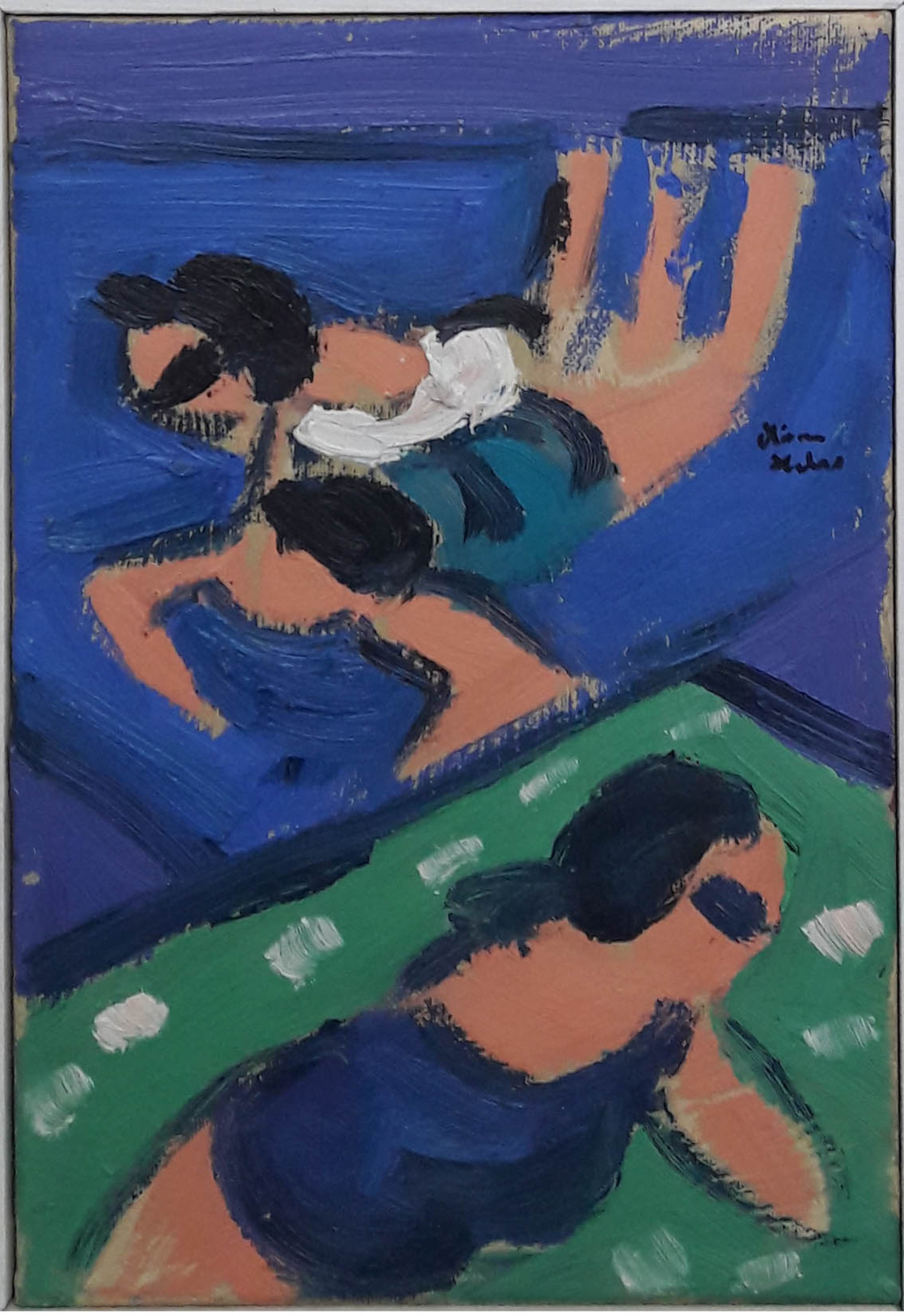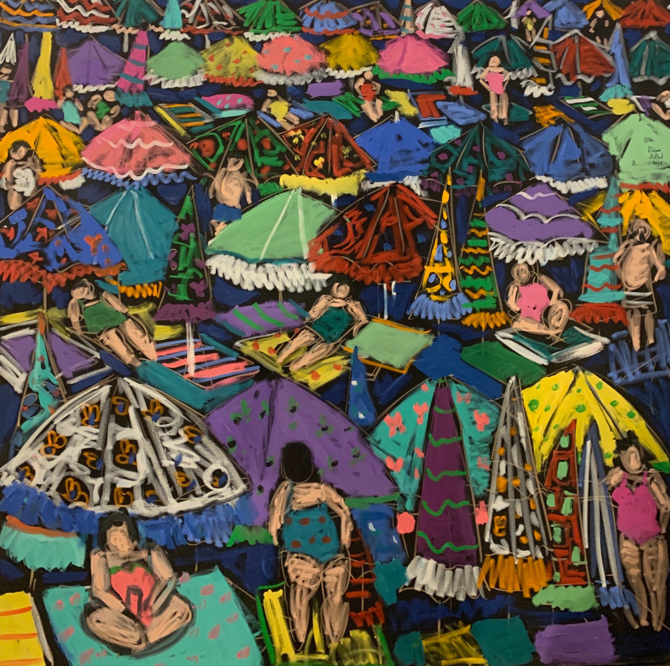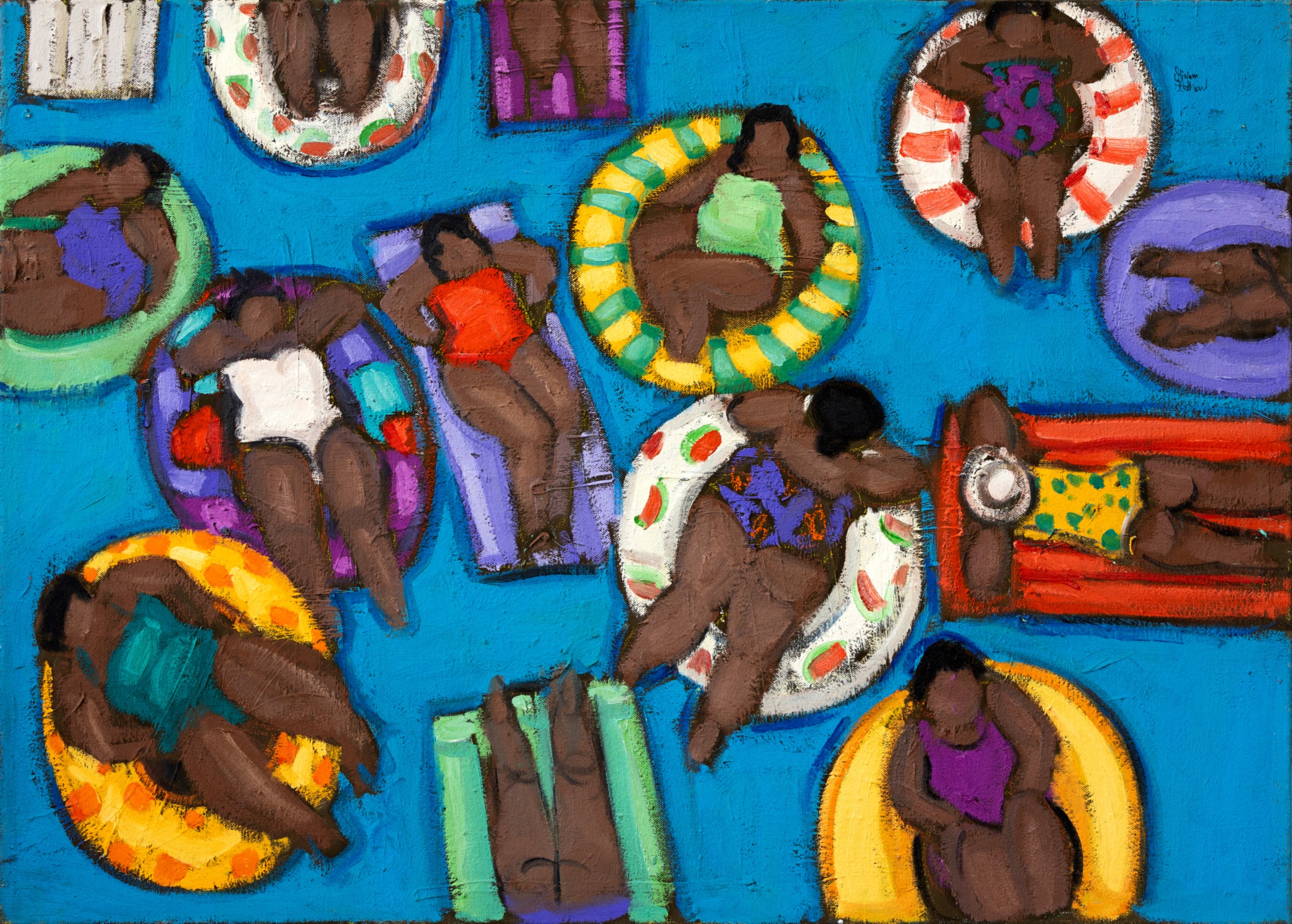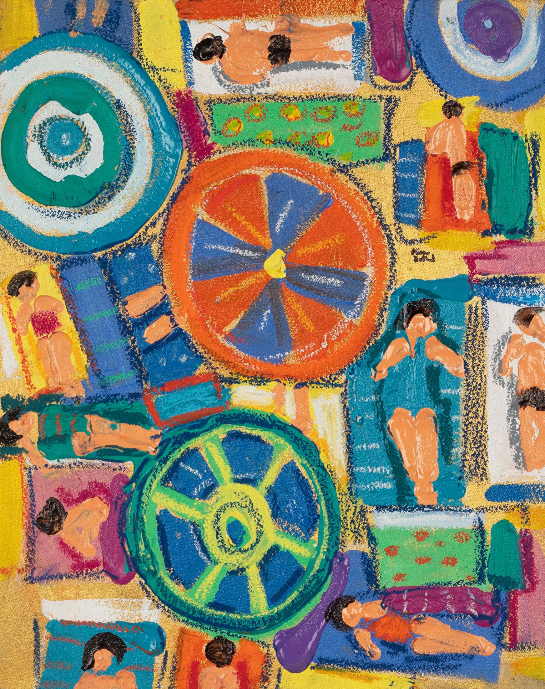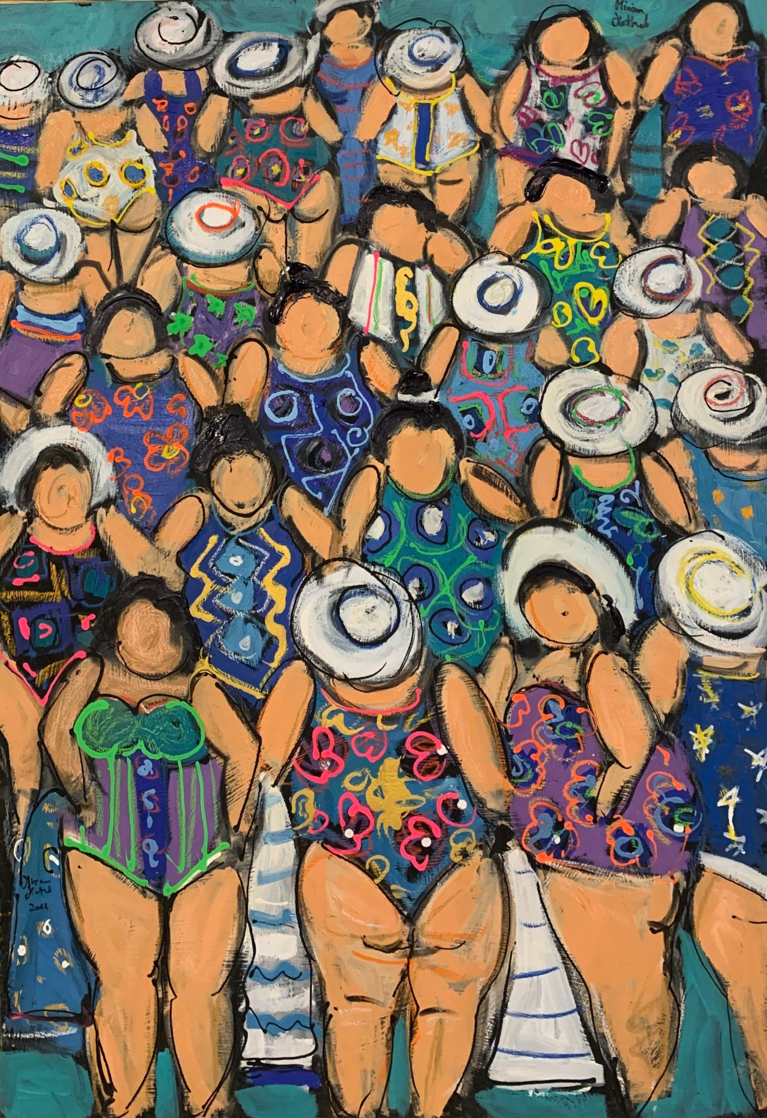 Miriam Hathout is a passionate painter who uses vibrant colors to portray scenes from the Egyptian countryside. Donkeys, dancers, and women harvesting in the fields are common themes in her work.