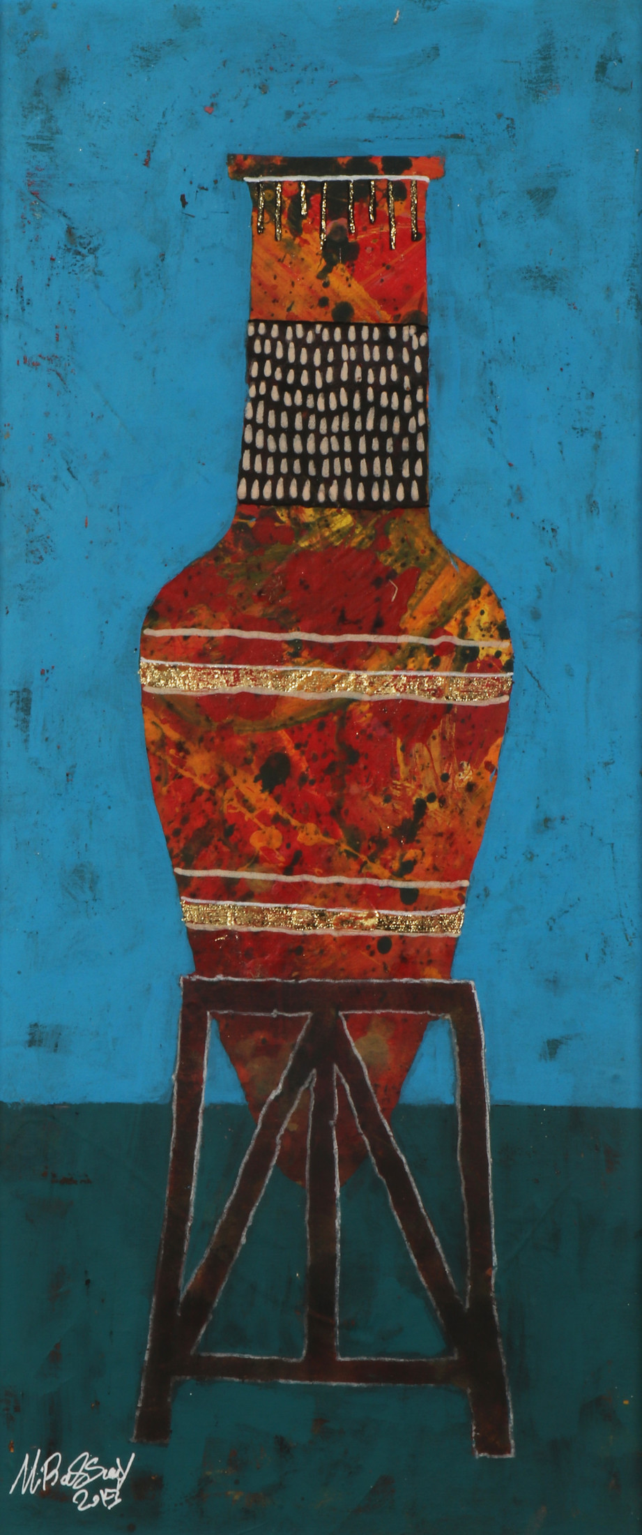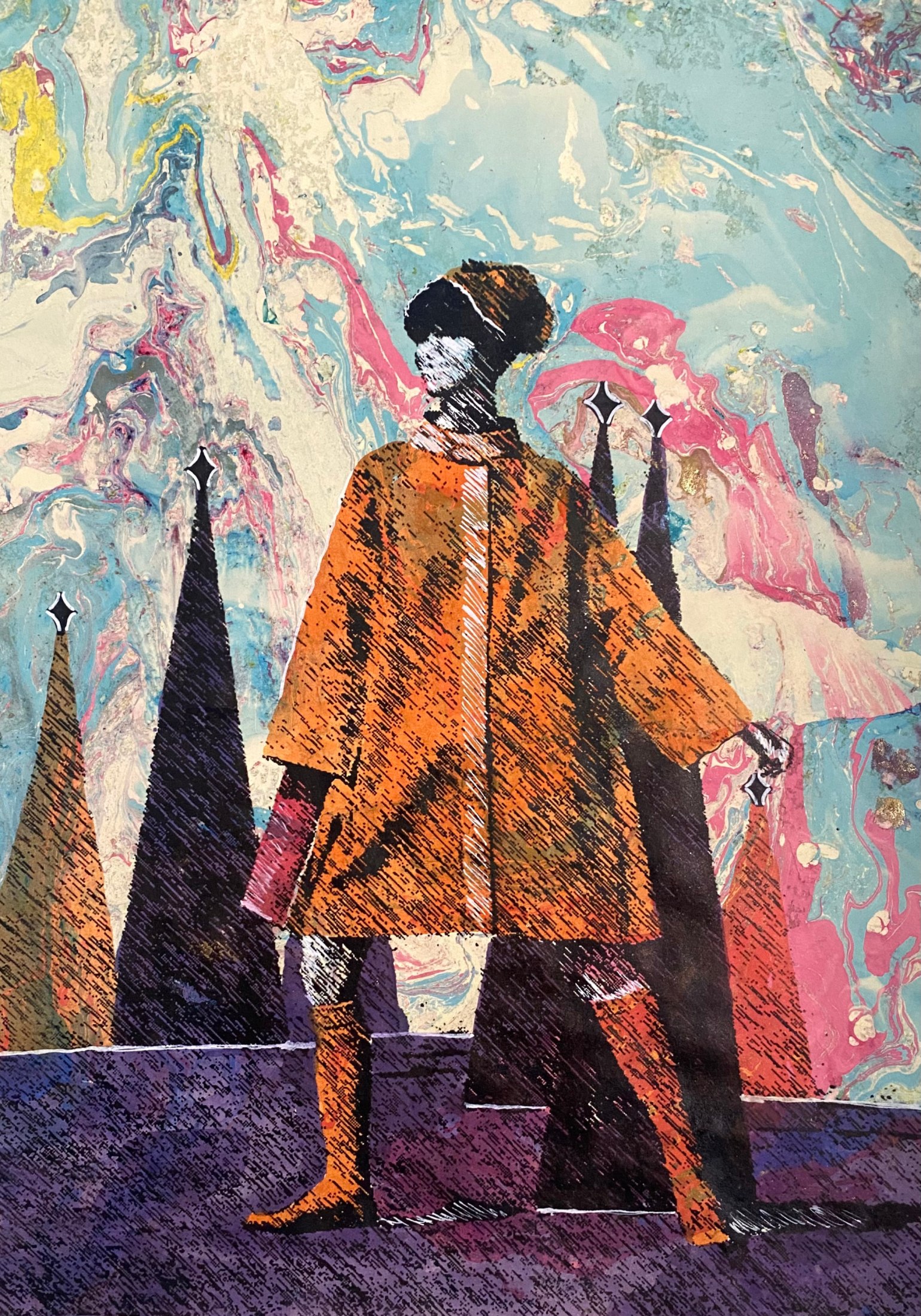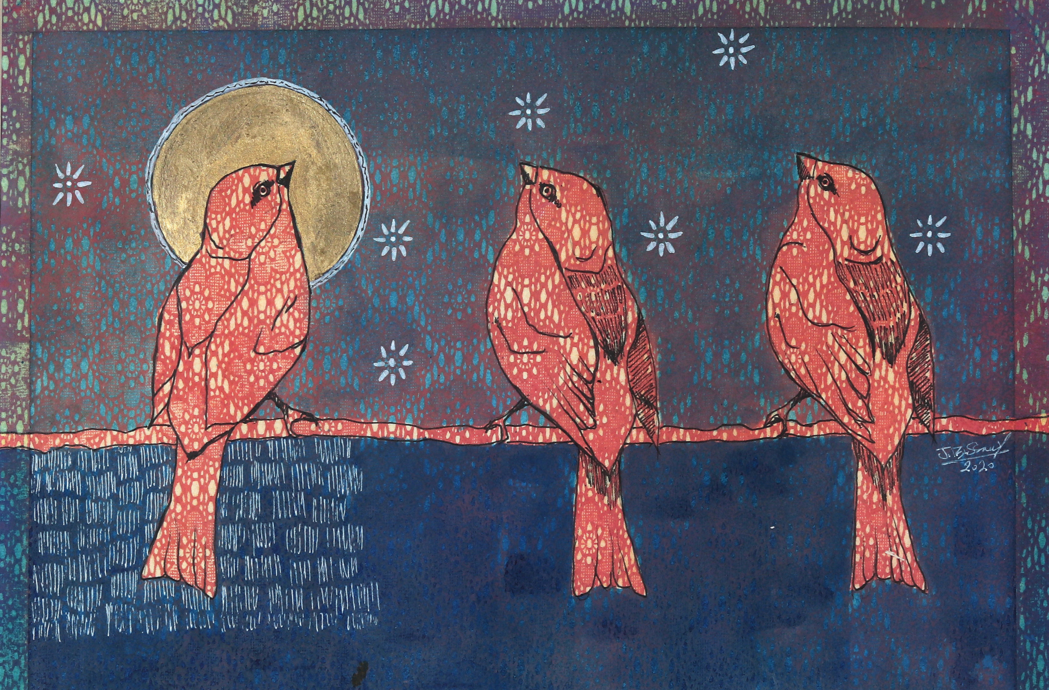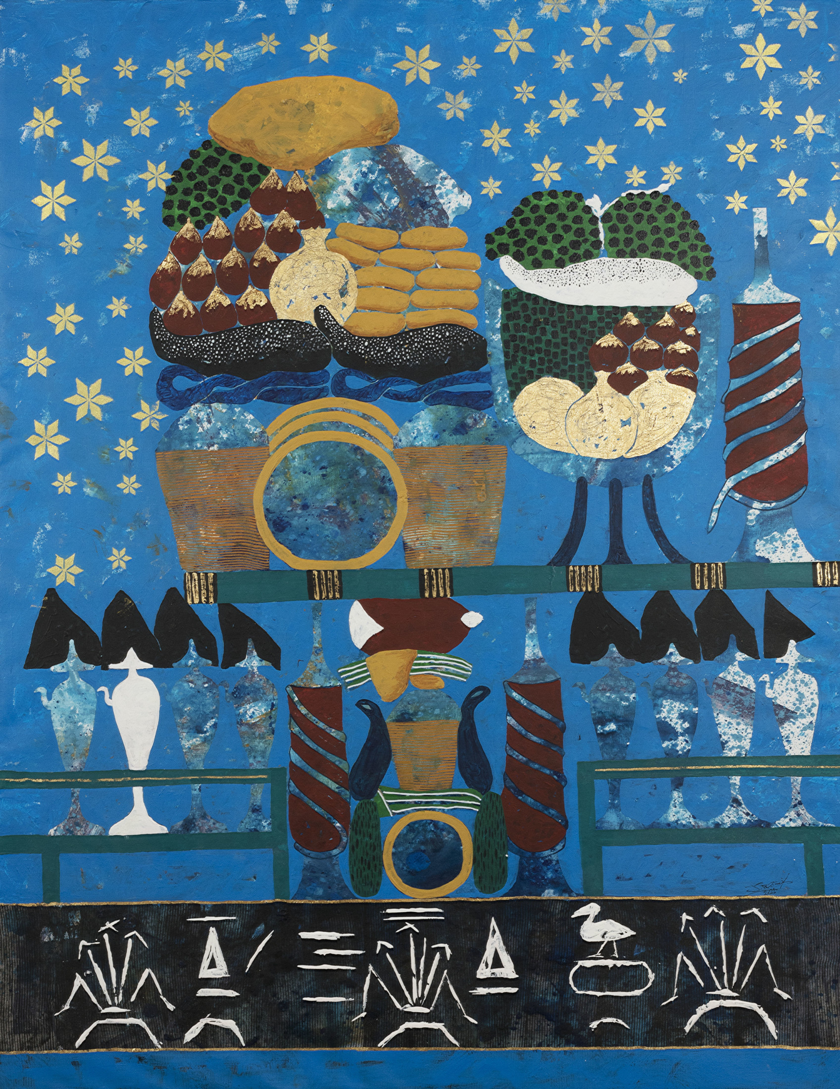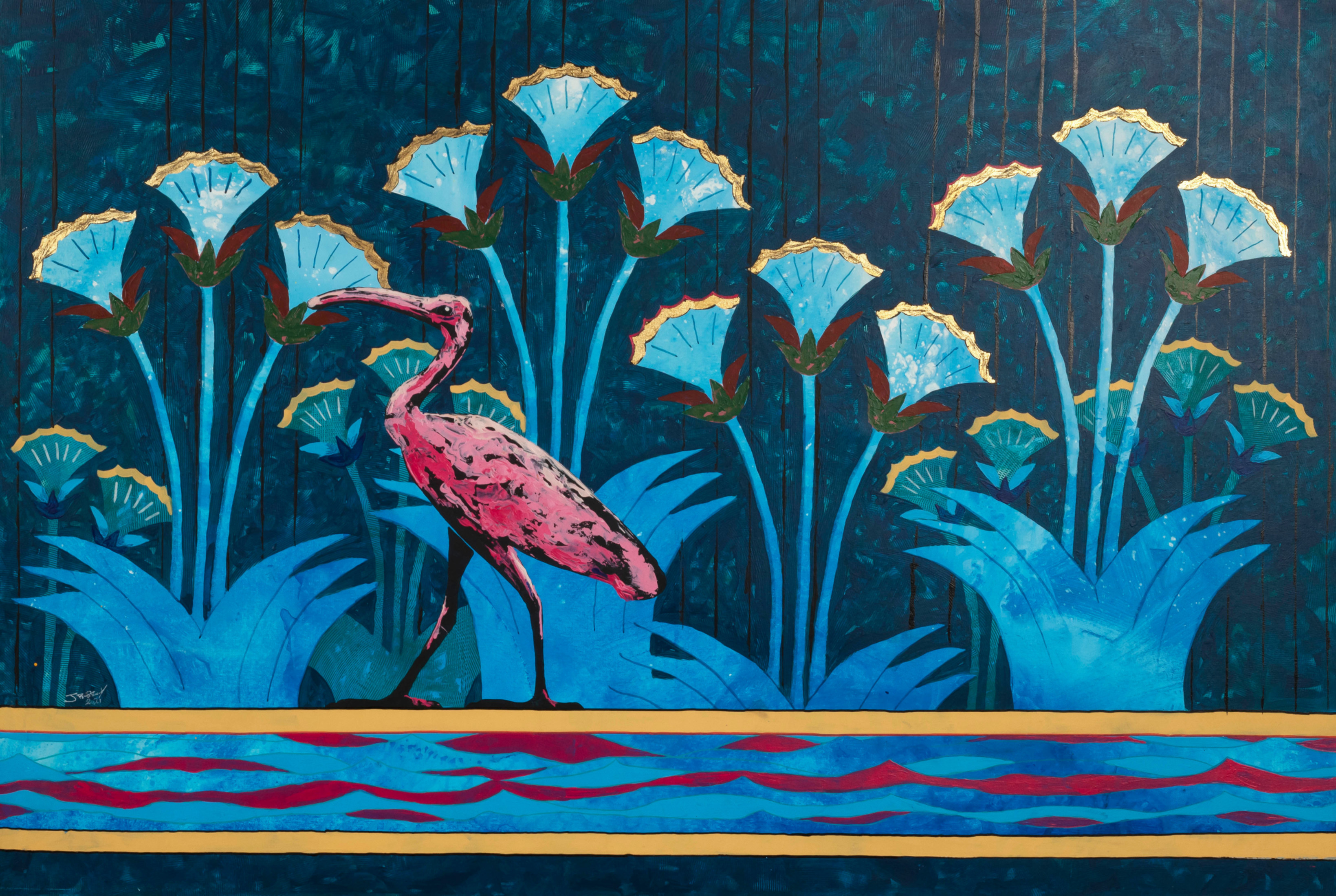 Revered for his richly patterned body of work, Bassiouni invokes the full power of colors by pulling themes from nature and history and turning them into an intricate visual web. In addition to being intensely inspired by Ancient Egyptian Art, Jamal's works often resemble the exquisite beauty of symmetry and the wondrous patterns of the universe. He works with a variety of mediums and challenges the viewer to take in all the details reflecting his vision in each piece he creates, making every work of his all the more unique.