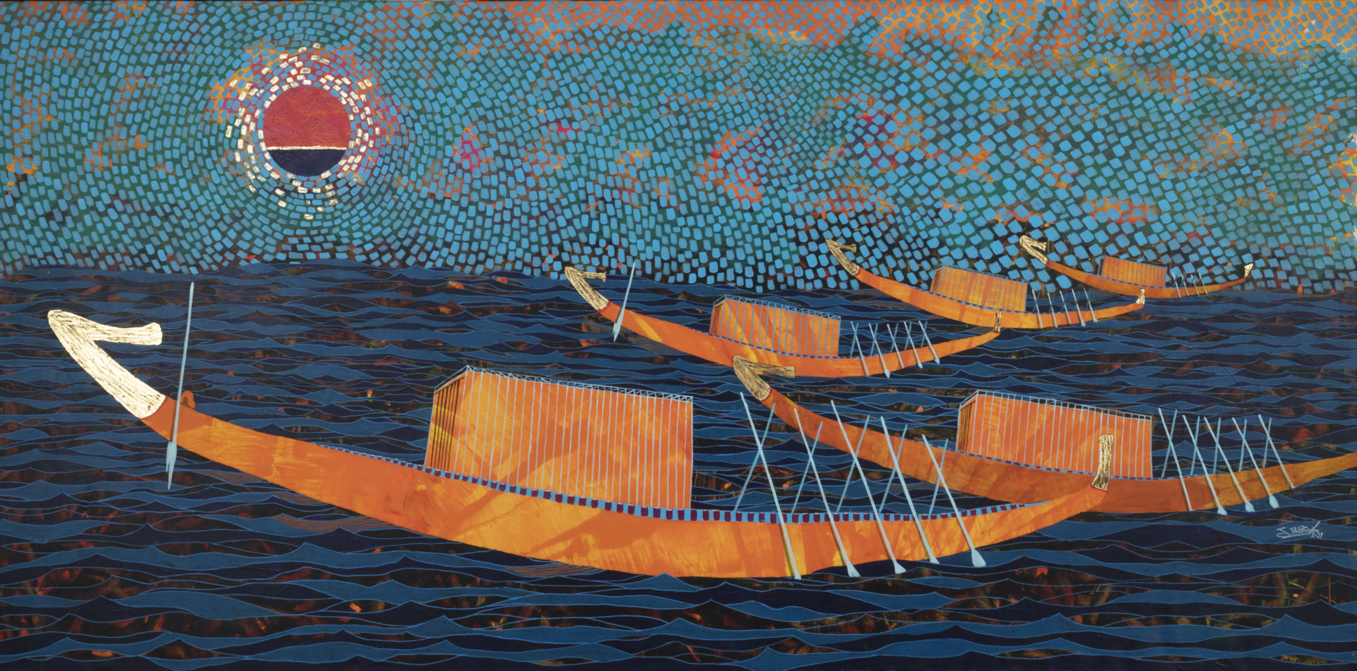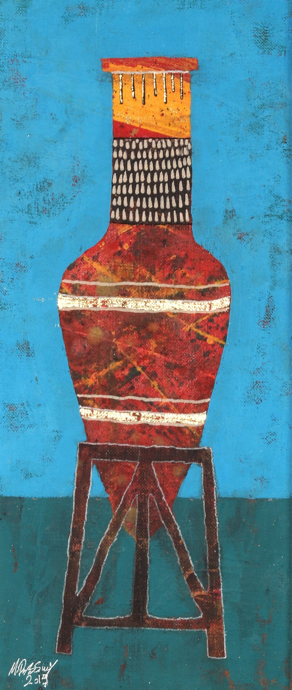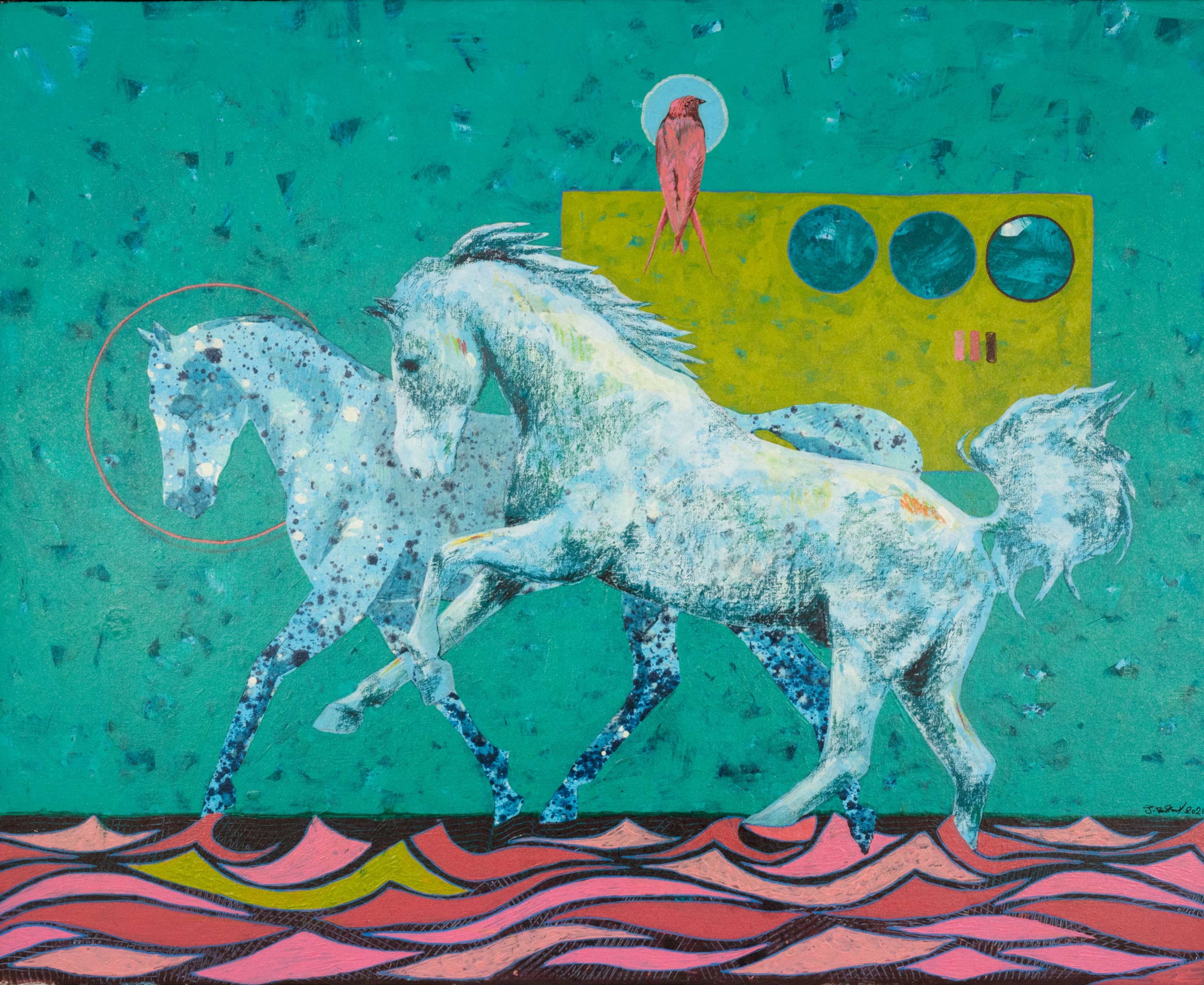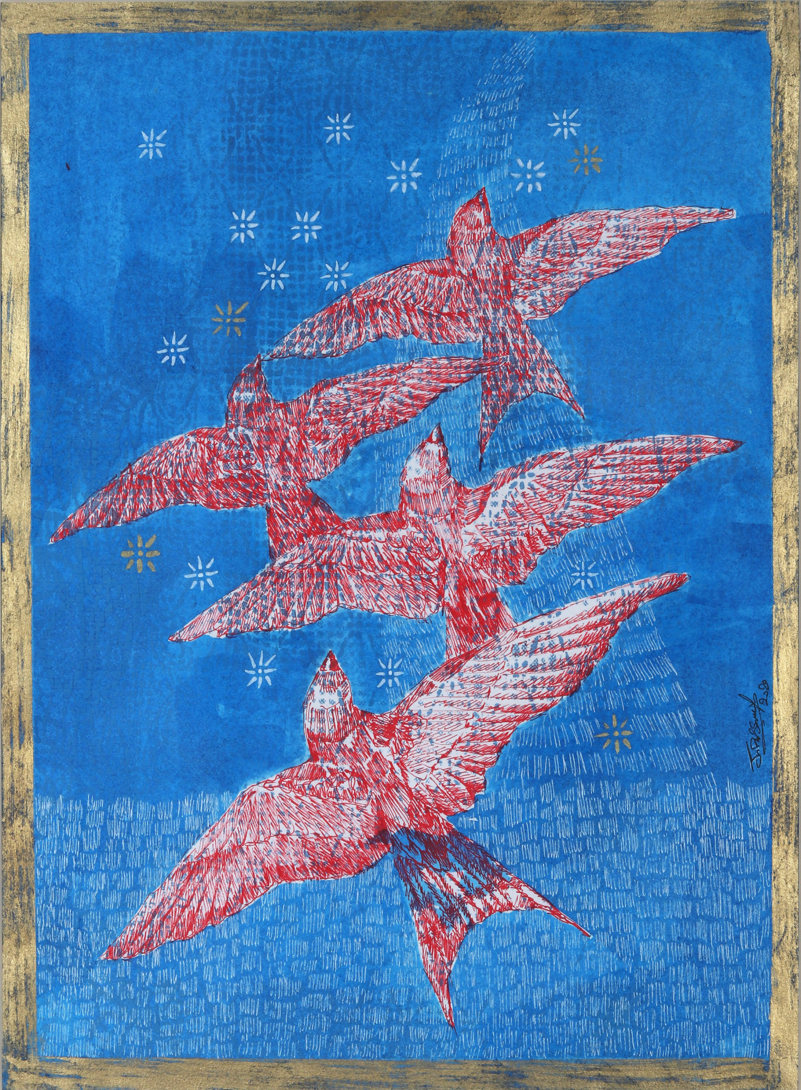 Revered for his richly patterned body of work, Bassiouni invokes the full power of colors by pulling themes from nature and history and turning them into an intricate visual web. In addition to being intensely inspired by Ancient Egyptian Art, Jamal's works often resemble the exquisite beauty of symmetry and the wondrous patterns of the universe. He works with a variety of mediums and challenges the viewer to take in all the details reflecting his vision in each piece he creates, making every work of his all the more unique.
