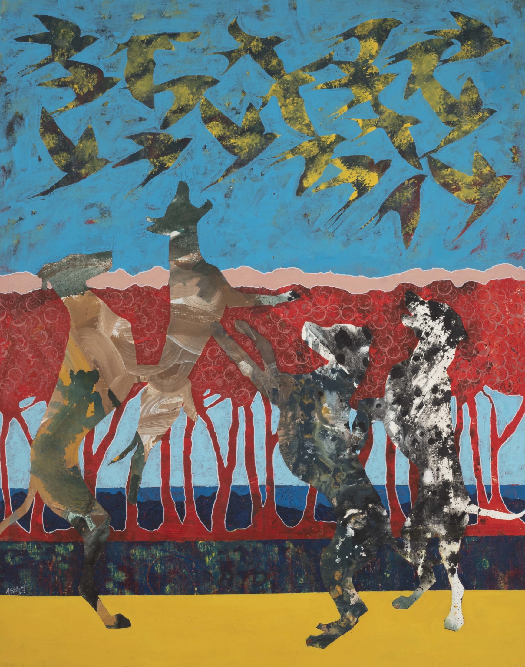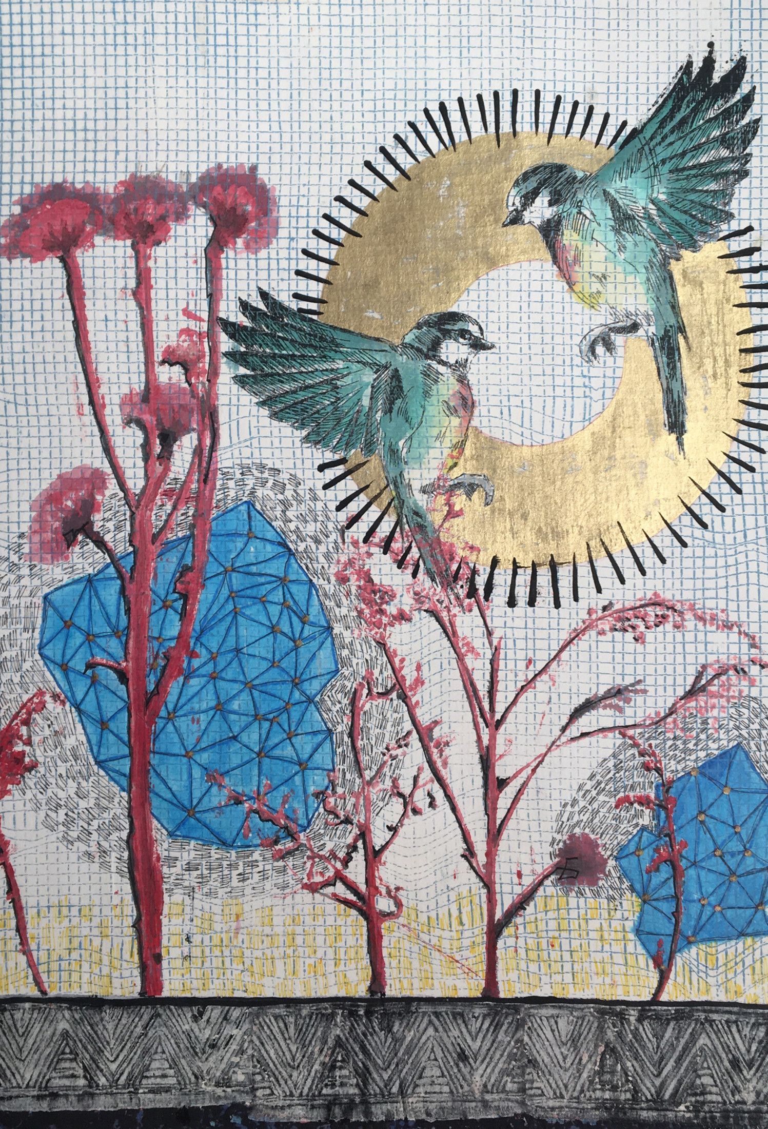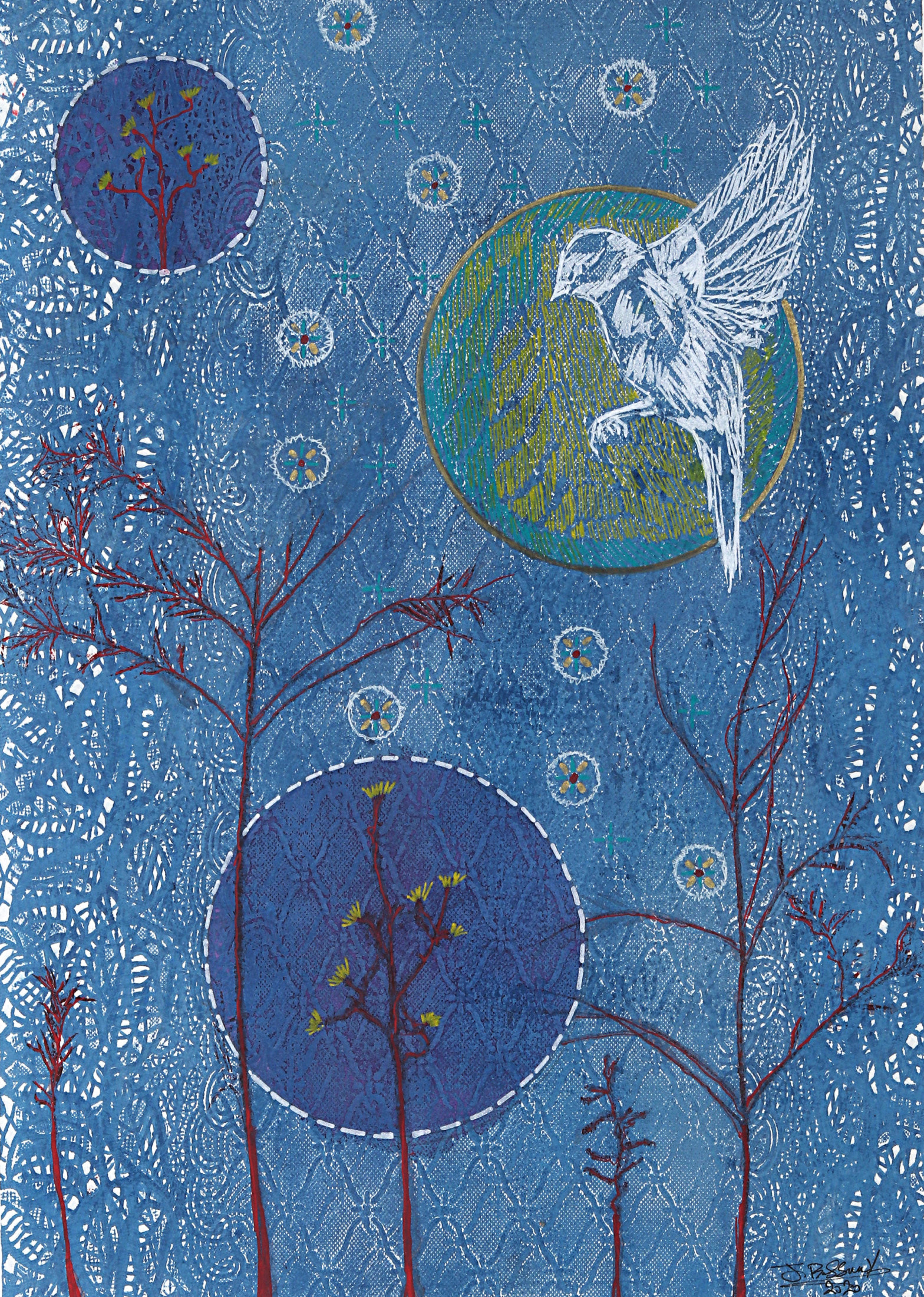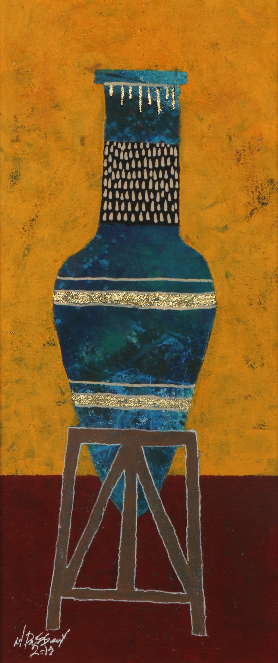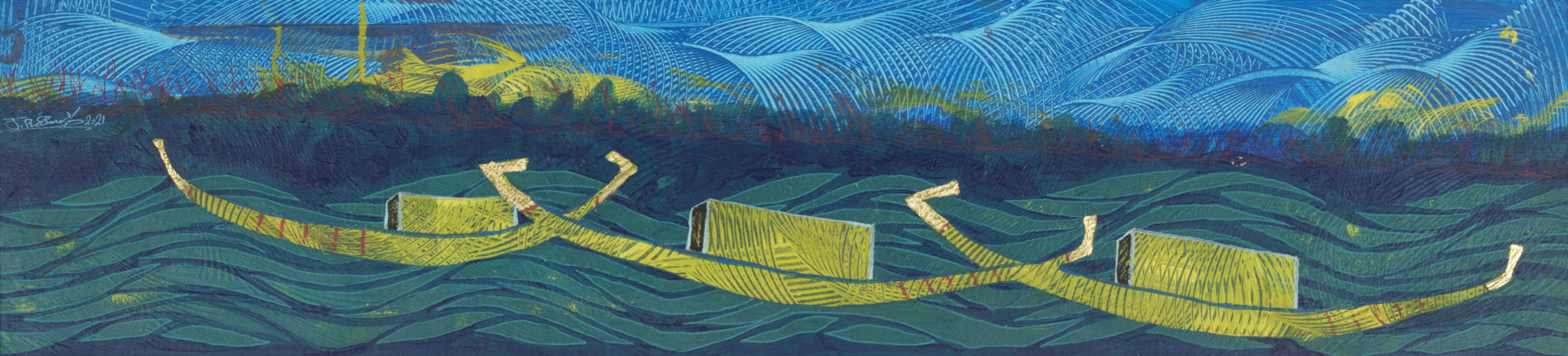 Revered for his richly patterned body of work, Bassiouni invokes the full power of colors by pulling themes from nature and history and turning them into an intricate visual web. In addition to being intensely inspired by Ancient Egyptian Art, Jamal's works often resemble the exquisite beauty of symmetry and the wondrous patterns of the universe. He works with a variety of mediums and challenges the viewer to take in all the details reflecting his vision in each piece he creates, making every work of his all the more unique.
