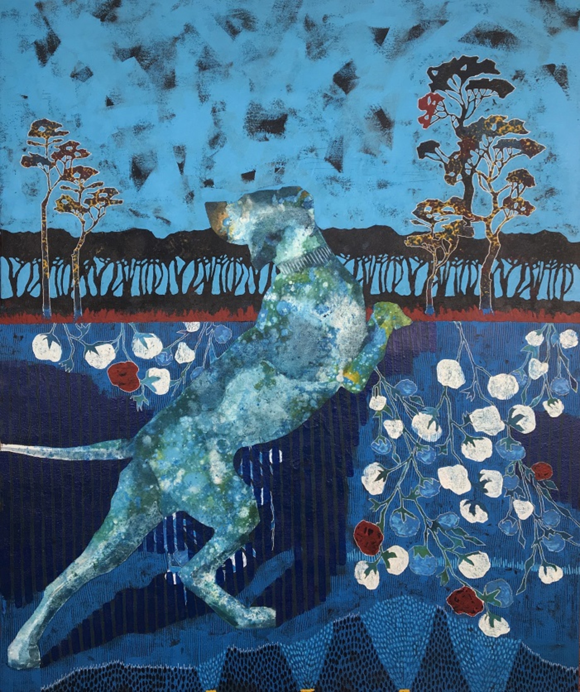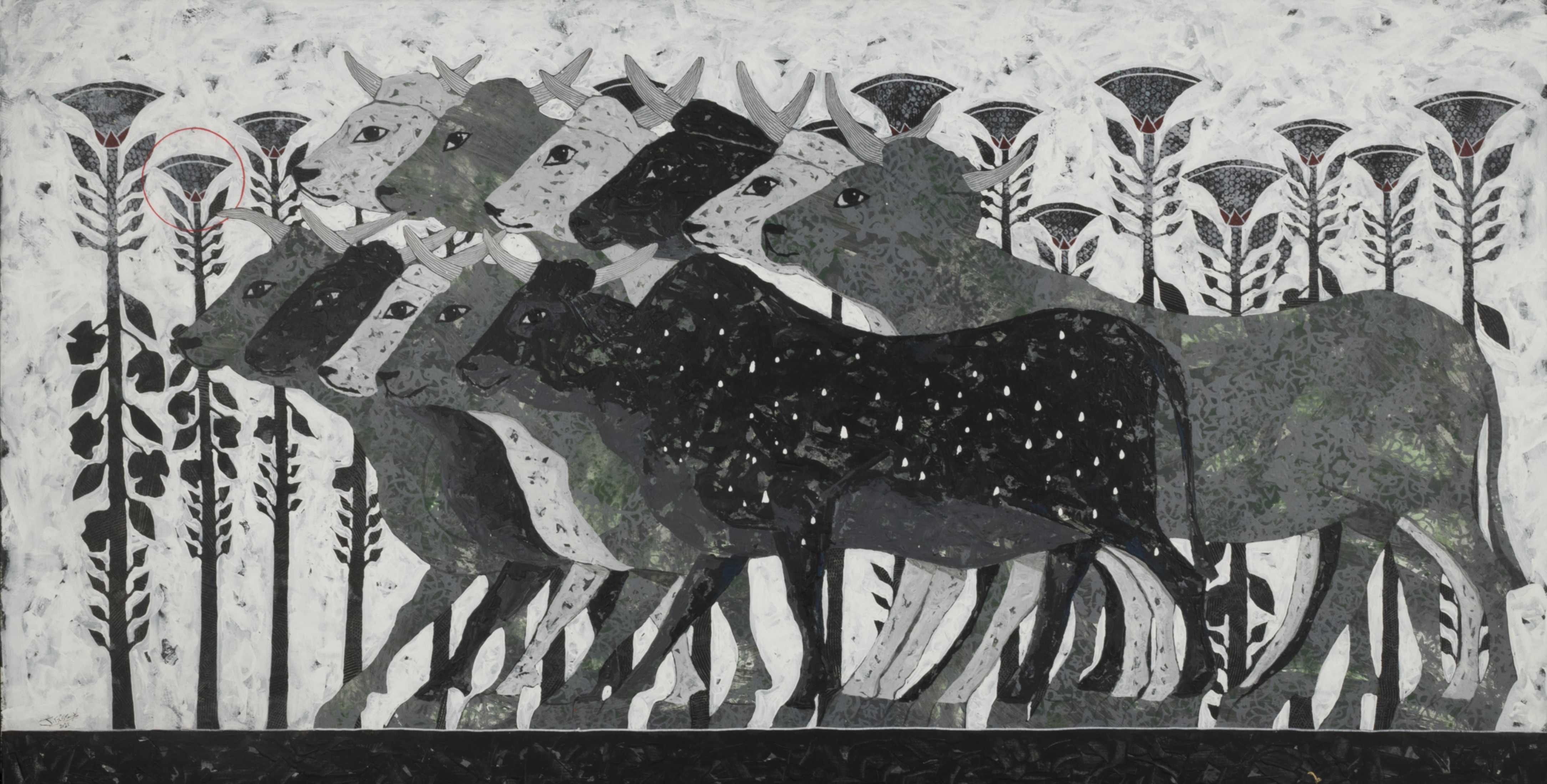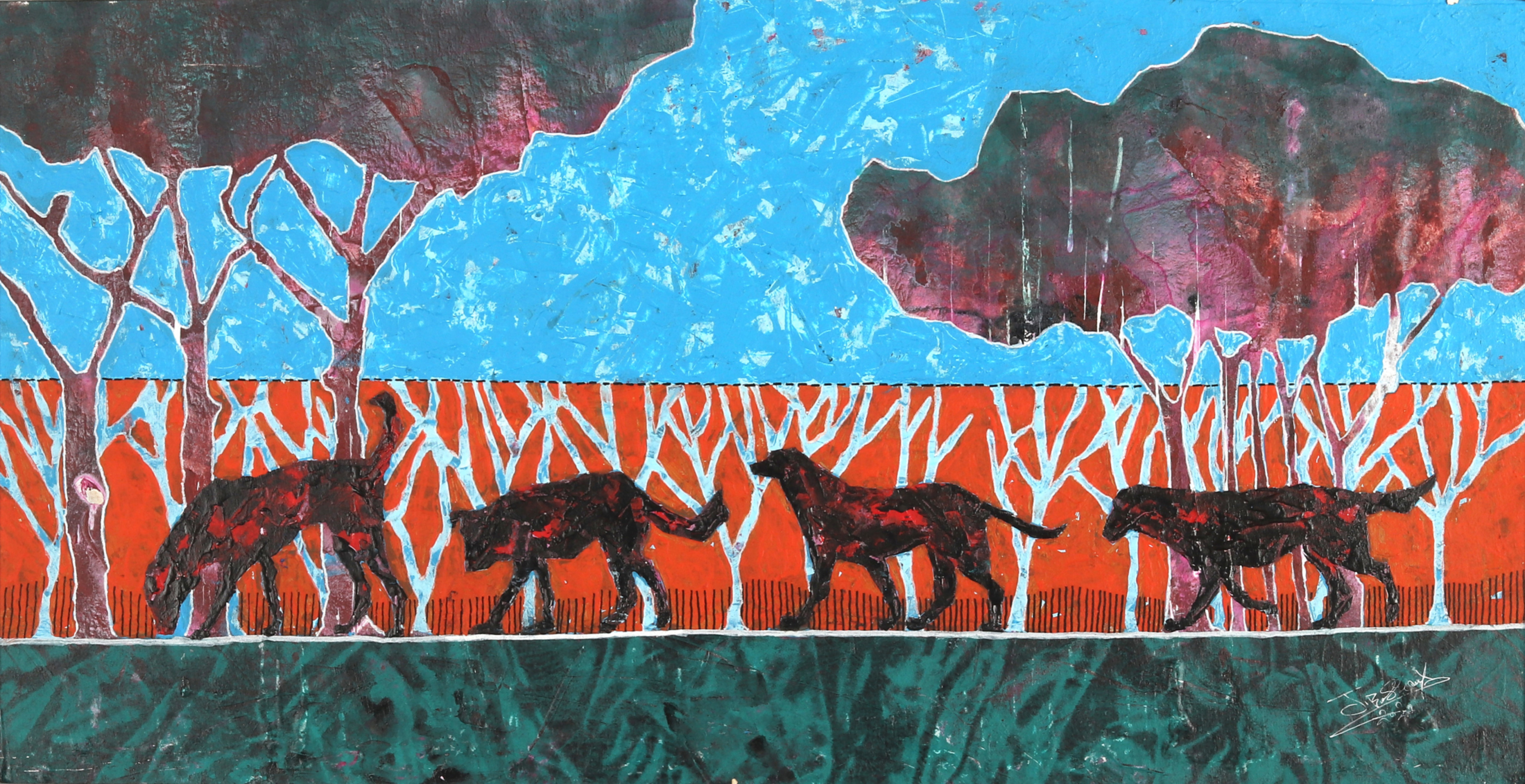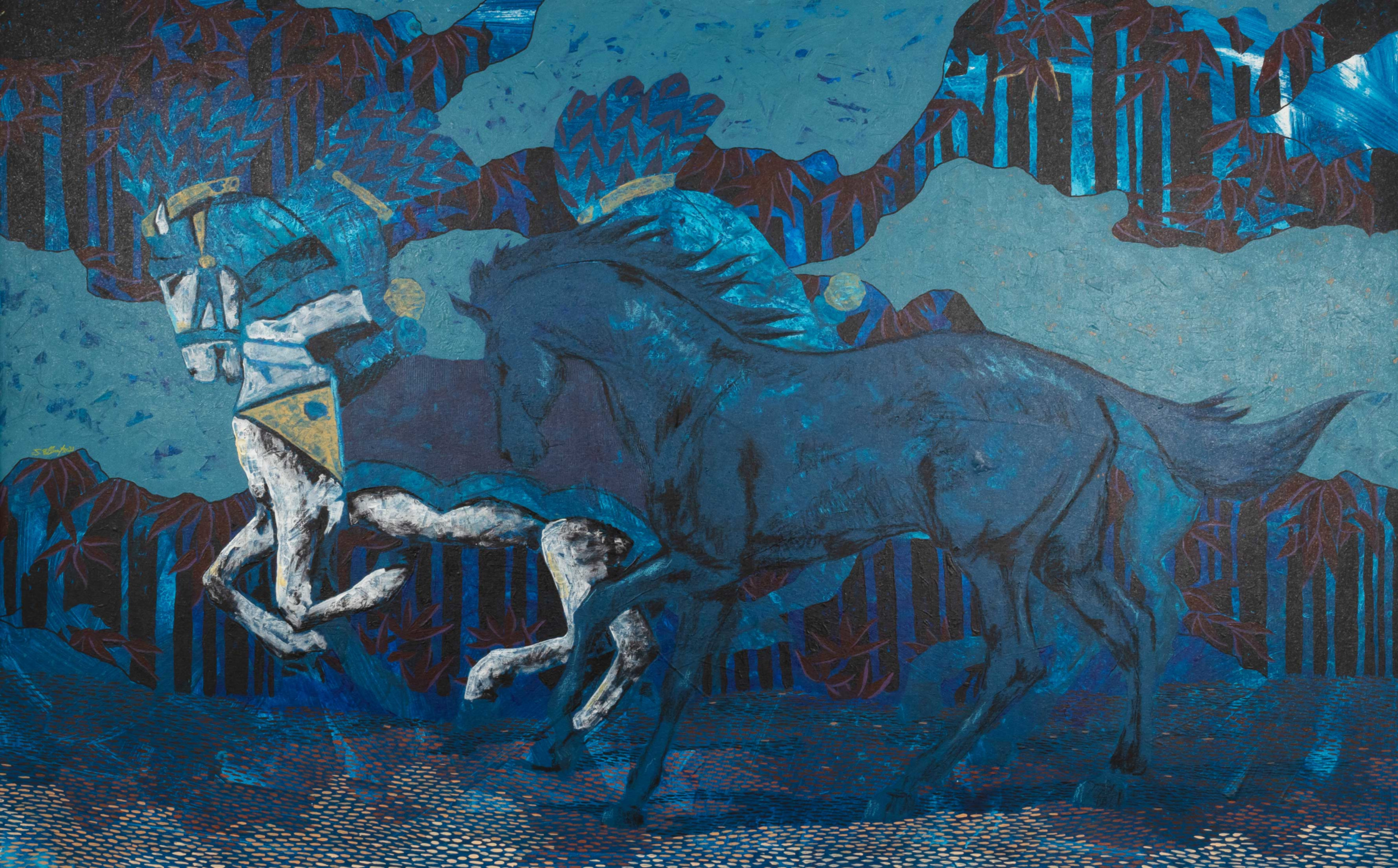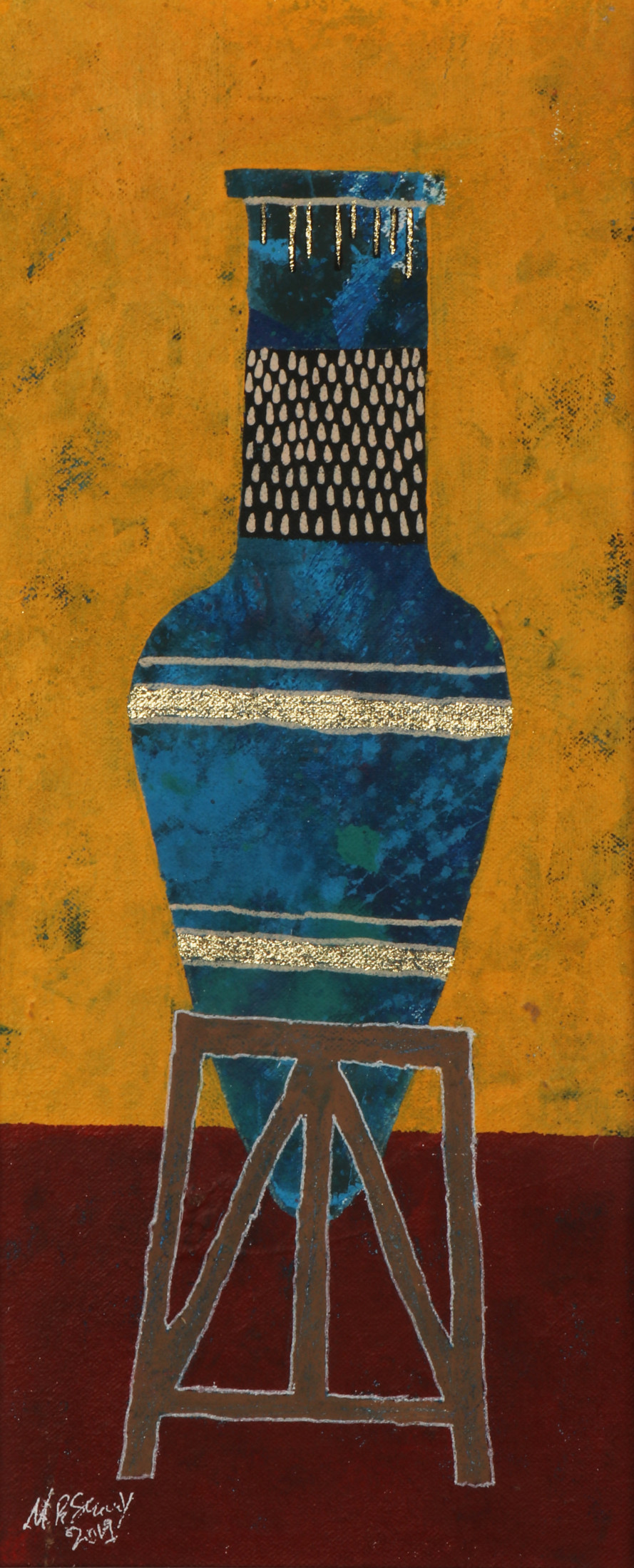 Revered for his richly patterned body of work, Bassiouni invokes the full power of colors by pulling themes from nature and history and turning them into an intricate visual web. In addition to being intensely inspired by Ancient Egyptian Art, Jamal's works often resemble the exquisite beauty of symmetry and the wondrous patterns of the universe. He works with a variety of mediums and challenges the viewer to take in all the details reflecting his vision in each piece he creates, making every work of his all the more unique.