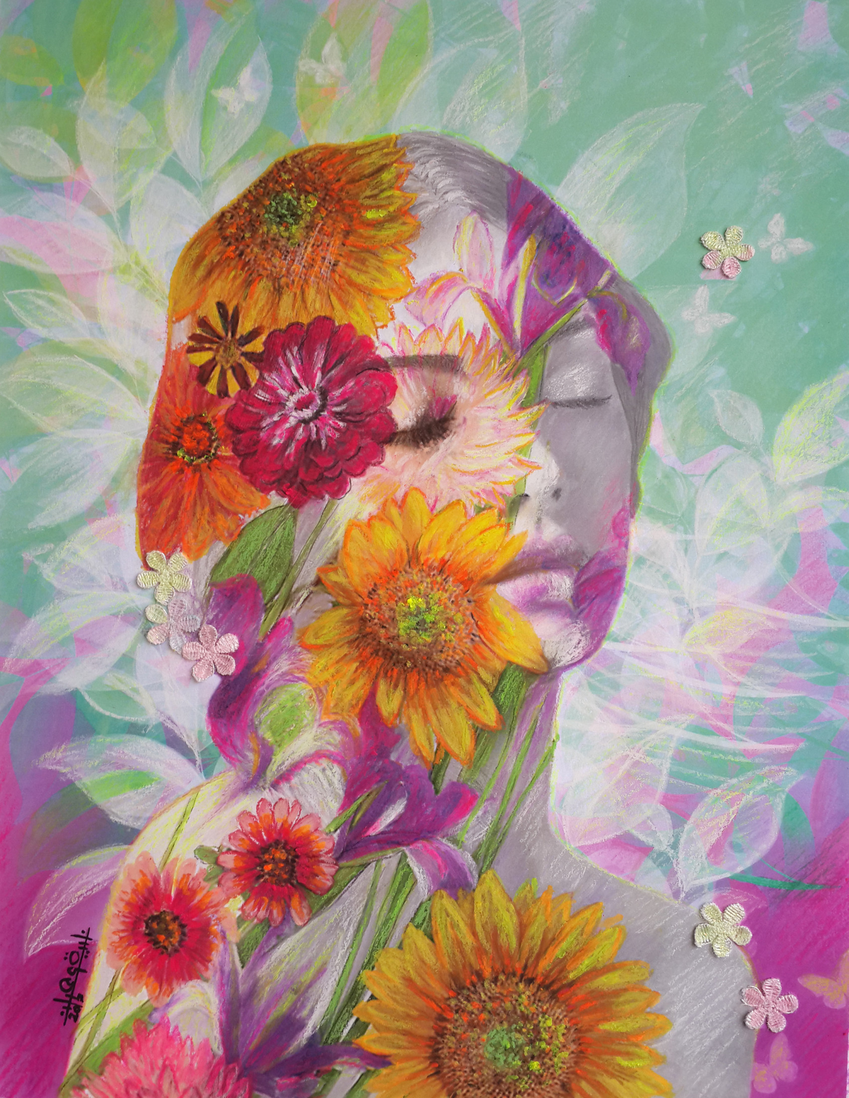 Painter Dr. Nadia Wahdan dwells in the splendors of mixed media for many of her colourful and multifaceted works. Exploring an aesthetic that accentuates traditional portrait photography with vibrant colours and textures, Wahdan presents to her audience art that is rejuvenating for both the eye and the soul.