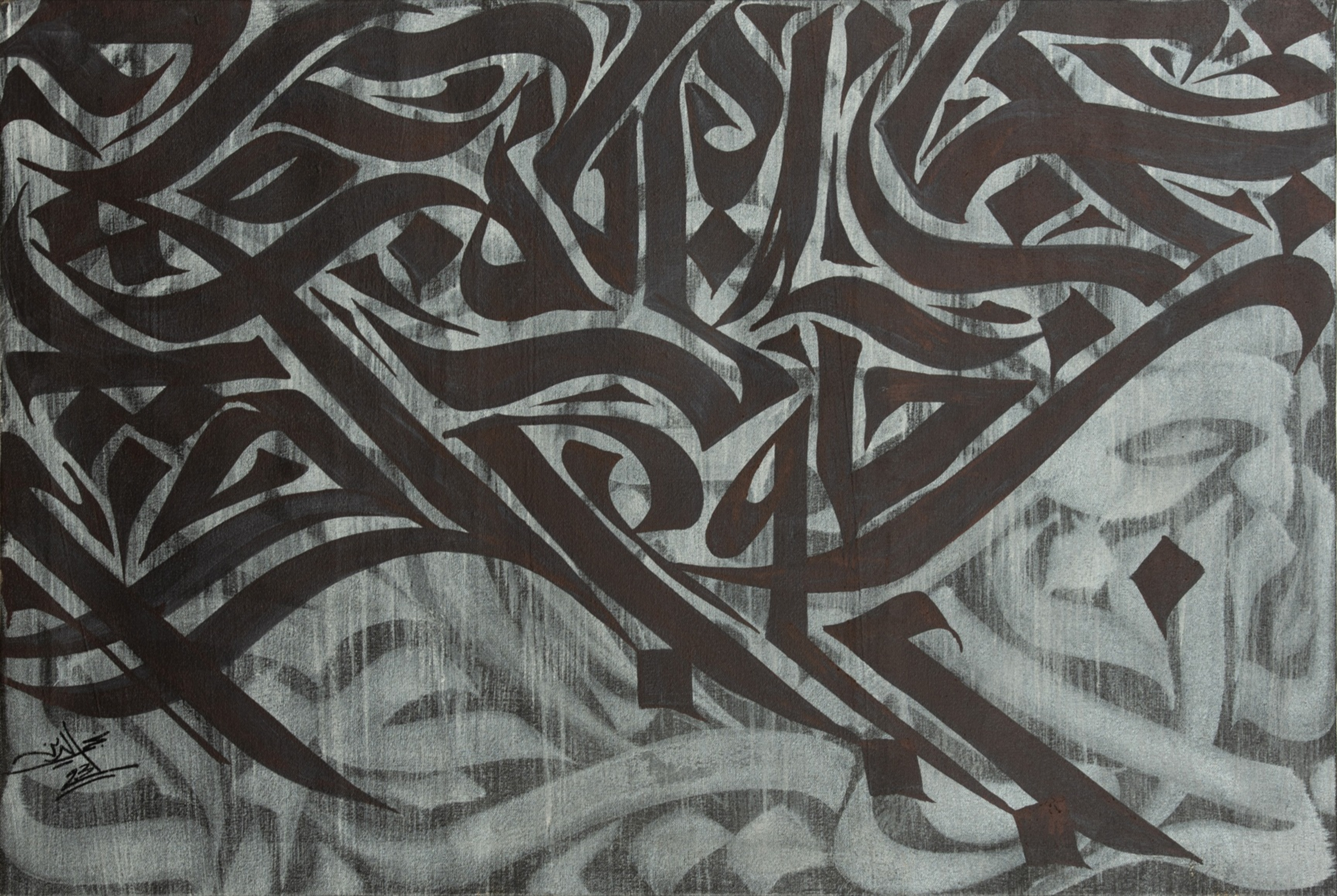 Throughout his artistic journey, he has collaborated with various clients, including prestigious names such as Vogue magazine, Azza Fahmy, and the Greek Campus, among others. His main area of focus lies in contemporary calligraphy compositions, exploring the fusion of traditional Arabic calligraphy with a modern visual approach.