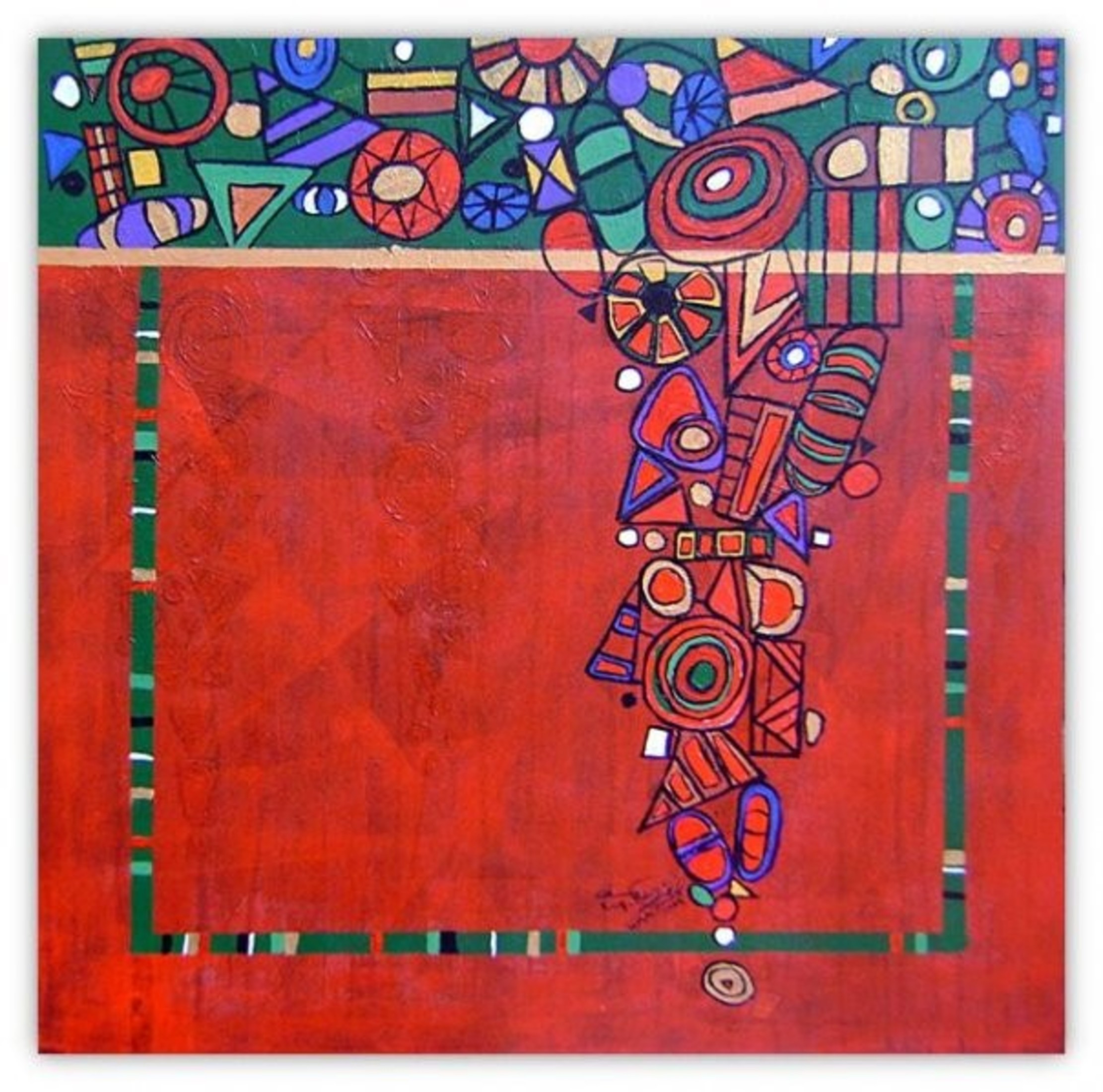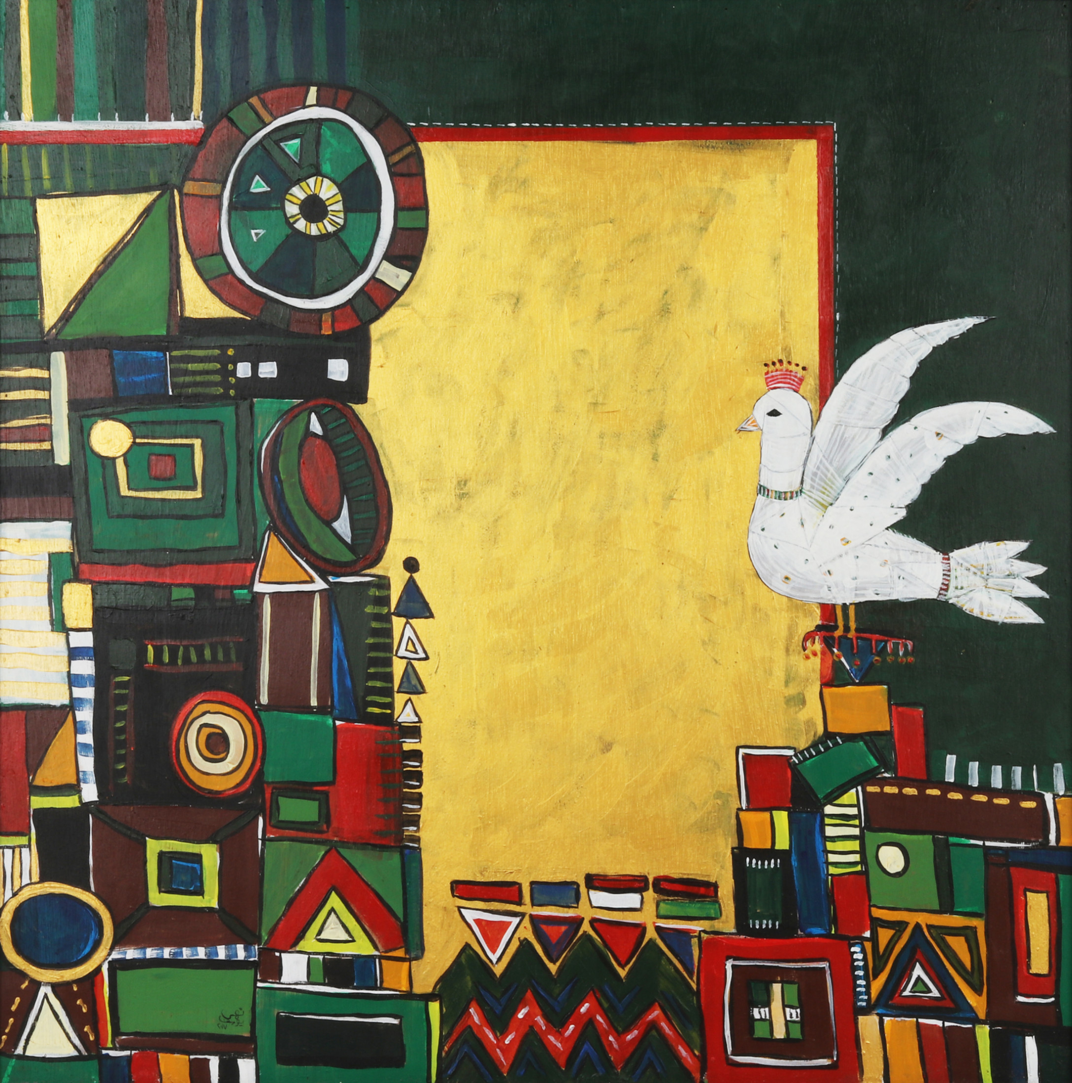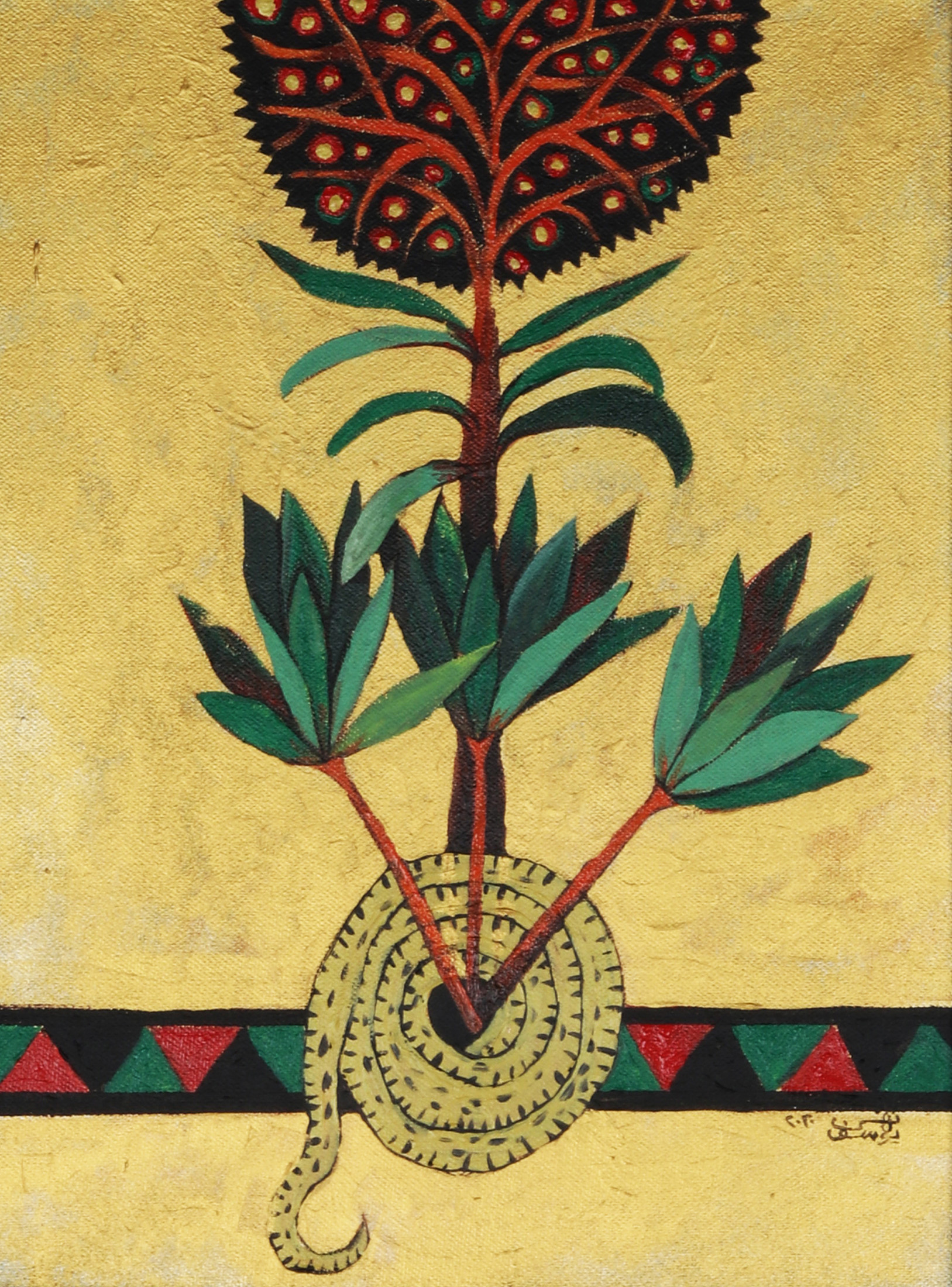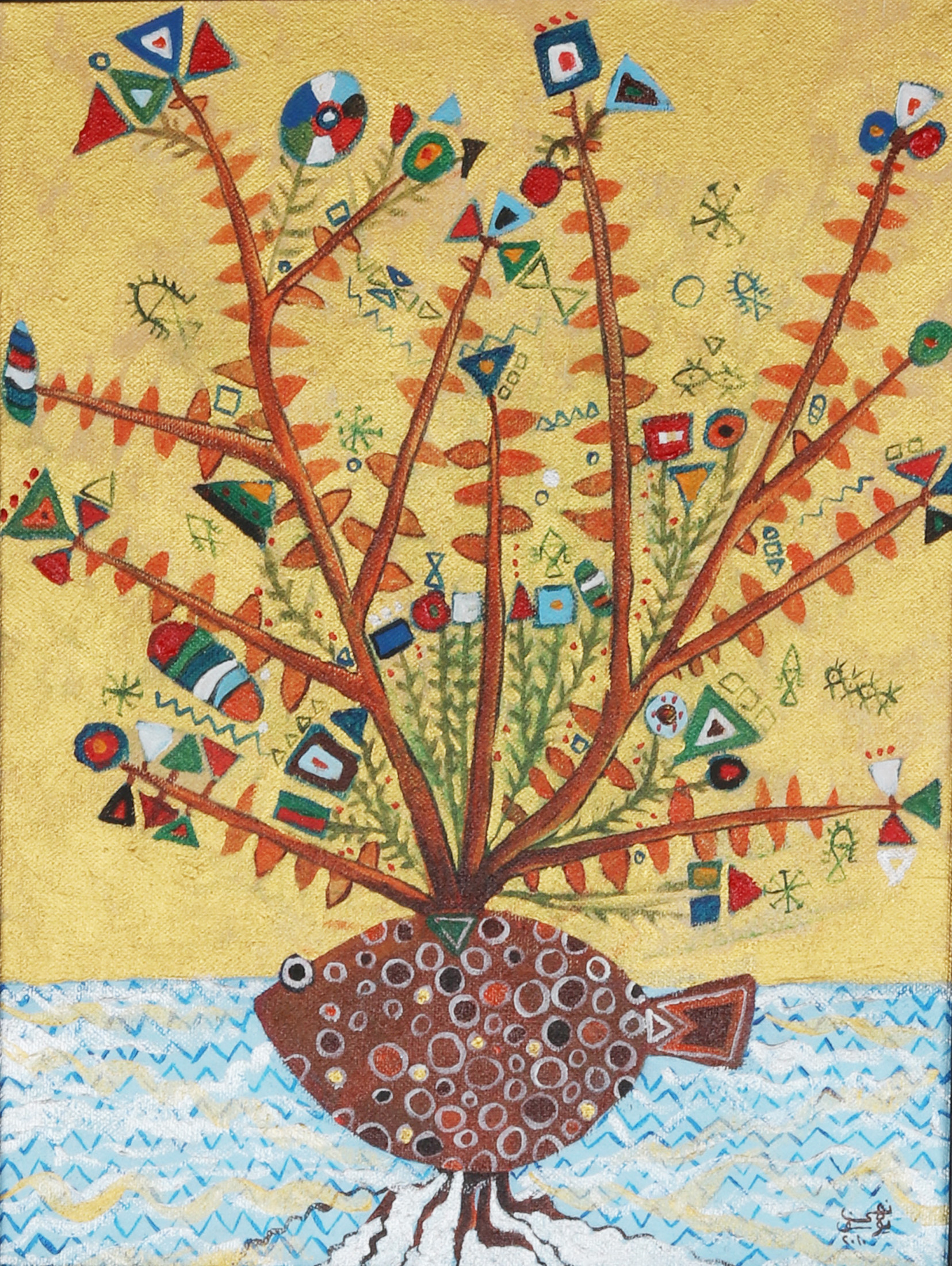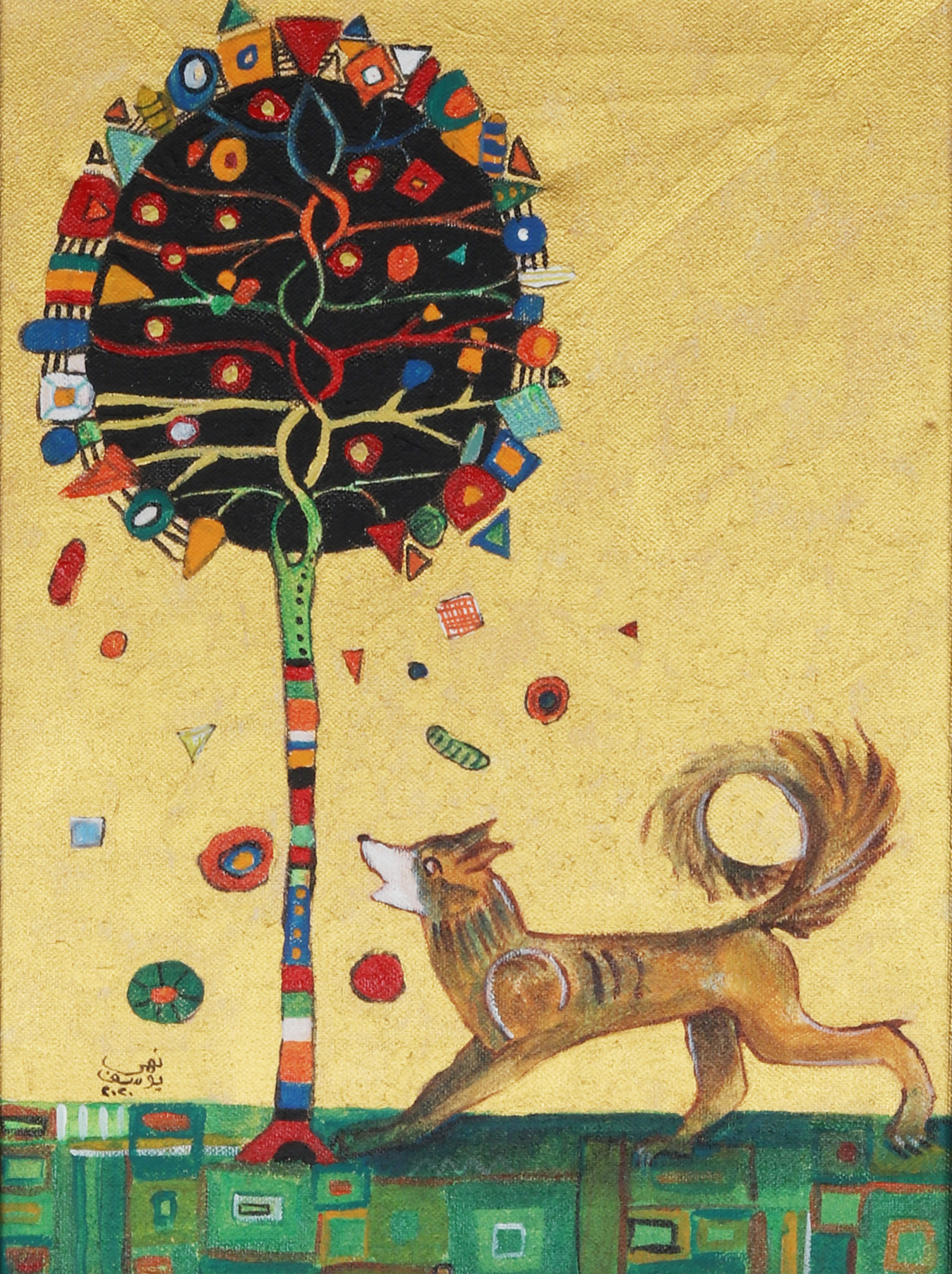 The artist’s creative experience is inspired to draw an attempt of the rich visual, literary and oral heritage in previous eras, by reformulating the elements of Islamic miniatures in their different eras and merging them with pure Egyptian vocabulary from the heart of the Egyptian popular entity, and it's art of a special nature, this merger is naturally out of context .The original was to suit the artist’s experience and also to serve the idea of marriage between the old and the modern, between the busy and the void, between the real and the legendary, in a contemporary framework that always accepts addition and renewal, first for the richness contained in the creations of those ancient times, secondly for the strength of the influence of folk art on the collective mind of the Egyptian society , and also for the cumulative nature of art, which is characterized by the possibility of accepting everything that is new, which also accepts the combination of two or more styles to produce a different form of visual creativity.